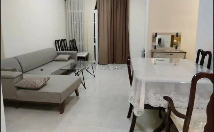 Նորակառույց շենքում վարձով է տրվում 3 սենյականոց բնակարան։Բնակարանը կապիտալ նորոգված է,Բոլոր միջսենյակային դռները փայտից են, հատակը ծածկված է որակյալ լամինատով և սալիկններով։ Ողջ բնակարանը կահավորված է բարձրակարգ կահույքով և համալրված ժամանակակից տեխնիկայով։