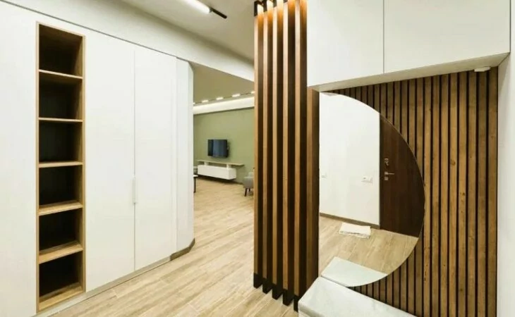 Գտնվում է 18 հարկանի շենքի 12-րդ հարկում, ընդհանուր մակերեսը 74 քմ է։