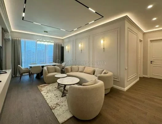 Բնակարանը հագեցած է անհրաժեշտ կահույքով և տեխնիկայով (հեռուստացույցներ, լվացքի մեքենա, գազօջախ, 4-խցիկանի սառնարան, աման լվանալու մեքենա, օդորակիչներ), անհատական ջեռուցման համակարգ, 2 լոգասենյակ, Wi-Fi։ Առկա է դեպի Հանր. Հրապարակի կողմ նայող բաց պատշգամբ։
