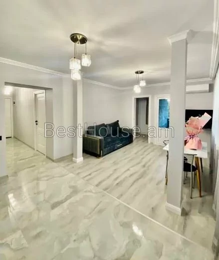 Տրվում է վարձով 4 սենյականոց բնակարան կենտրոնում, 90 ք.մ., նախավերջին հարկ, եվրովերանորոգված, քարե շենք