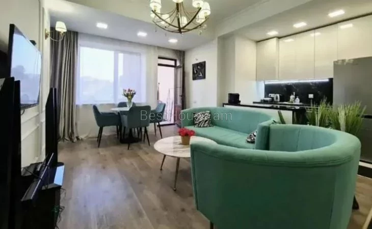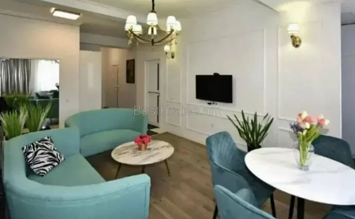 Բնակարանն ամբողջությամբ եվրո նորոգված է, միացված է կենտրոնացված ջեռուցման համակարգին: Սենյակները կահավորված են և համալրված են կենցաղային տեխնիկայով: Առկա է բաց պատշգամբ` գեղեցիկ տեսարանով: Շենքում գործում է 2 վերելակ, ունի անվտանգության համակարգ, կանաչապատ բակ և խաղահրապարակ: