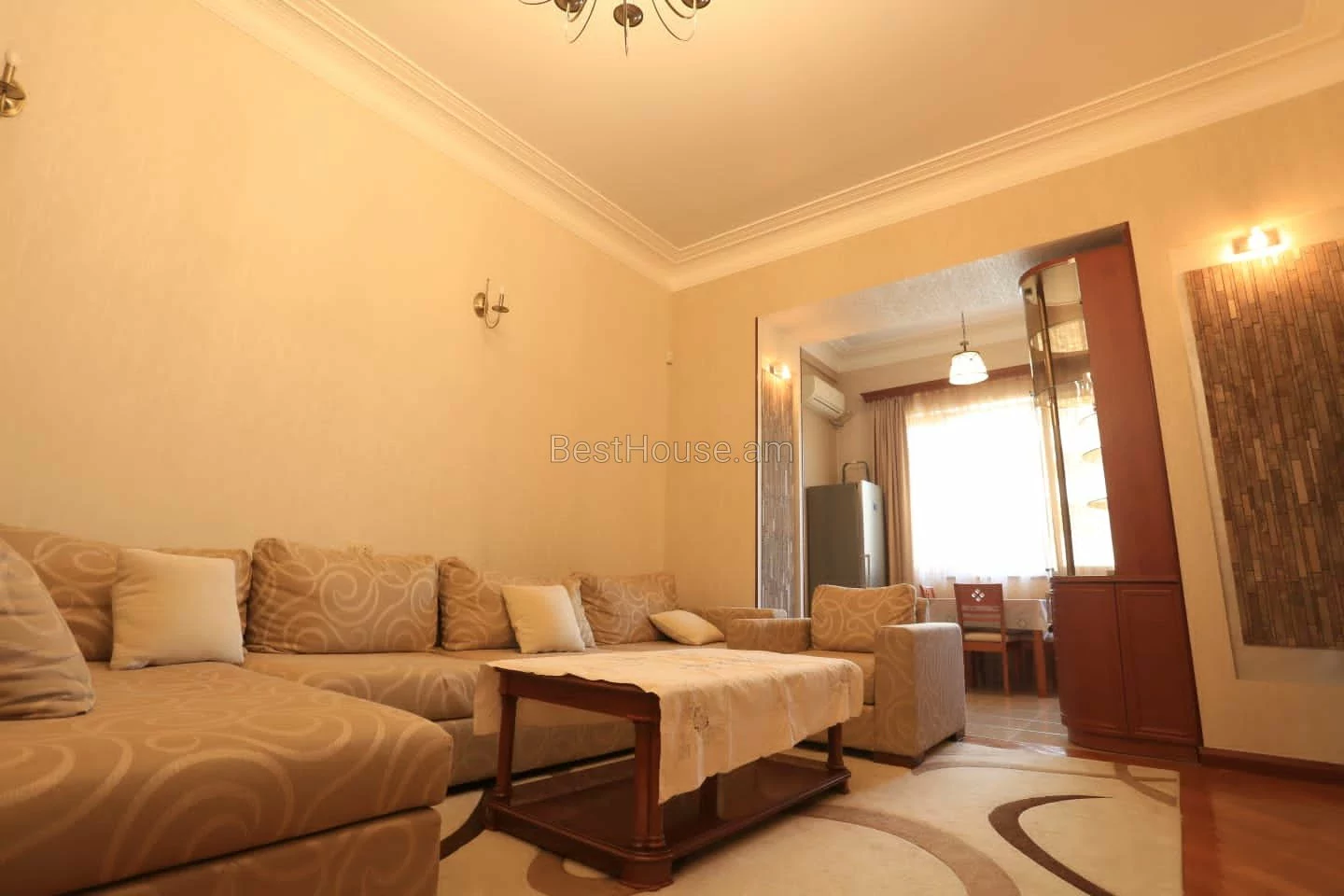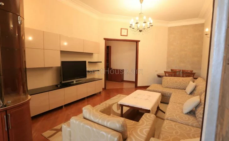 Վարձով է տրվում 3 սենյականոց բնակարան Թումանյան փողոցում (2 ննջասենյակ) ։ Կապիտալ բարձորակ վերանորոգում։ Առկա է անհրաժեշտ ողջ կահույքը, ներկառուցված պահարաններ, կենցաղային տեխնիկա։ Բարձր առաստաղներ։