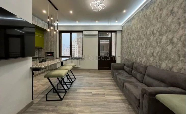 Տրվում է վարձով 3 սենյականոց բնակարան նորակառույց շենքում Բյուզանդի փողոցում, 72 ք.մ., բարձր առաստաղներ, 11/17 հարկ: Առկա են կոմունալ բոլոր հարմարությունները: