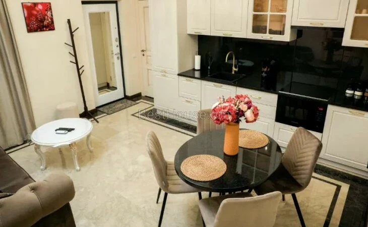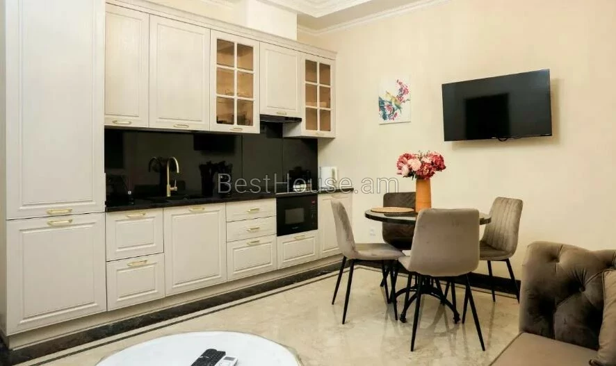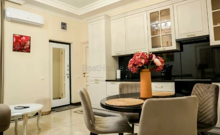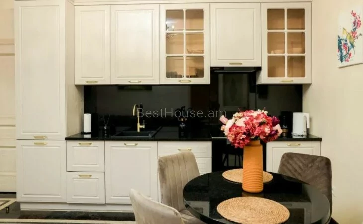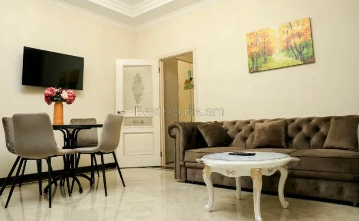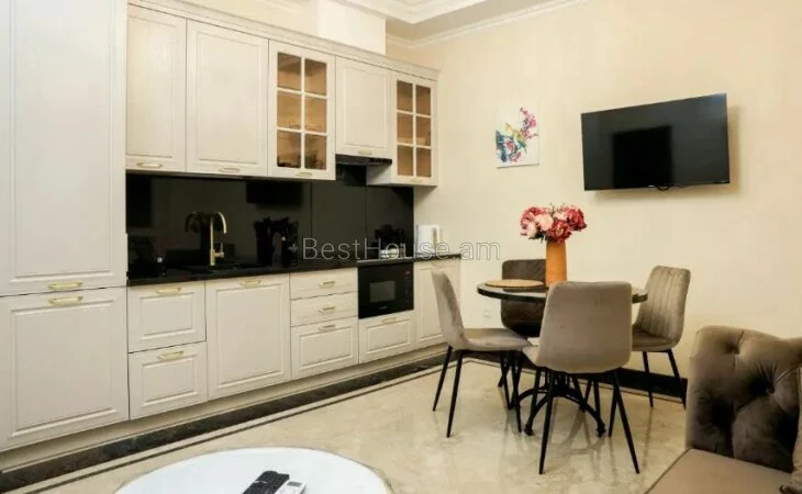 Շենքը գտնվում է «Փարիզ» հյուրանոցի հարևանությամբ։ Բնակարանը ամբողջությամբ նոր է, առկա է սպասք, անկողնային պարագաներ: Բնակարանը պատված է մարմարով և գրանիտով։ Առկա է գերարագ ինտերնետ, կաբելային հեռուստացույց, NETFLIX, միկրոալիքային վառարան, լվացքի մեքենա, թեյնիկ, տոստեր, արդուկ, ֆեն։