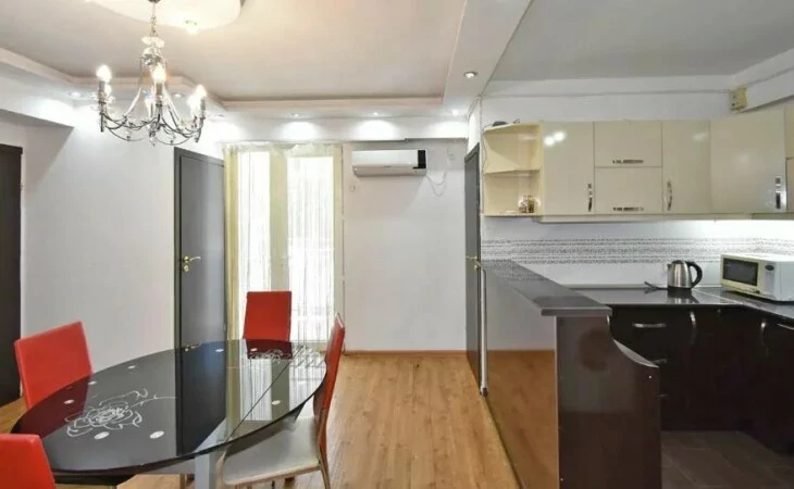 ...Վարձով է տրվում 3 սենյականոց բնակարան՝ 70 ք.մ. մակերեսով ՝ Մաշտոցի պողոտայում՝ 11 հարկանի շենքի 2-րդ հարկում: Բնակարանը կապիտալ եվրովերանորոգված է։ Տեղադրված է երկաթյա դուռ, եվրոպատուհաններ, օդորակիչ, հատակը ծածկված է լամինատով: Ջեռուցվում է գազի կաթսայի միջոցով։ Սանհանգույցը և խոհանոցը պատված են սալիկներով, հագեցած է սանտեխնիկայով: Բոլոր սենյակները և խոհանոցը կահավորրված են։ Առկա է կաբելային հեռուստատեսություն և ինտերնետ։ Լի է ներկառուցված պահարաններով թե՛ միջանցքում, թե՛ խոհանոցում: Ավտոմեքենաների համար հատկացված են բացօթյա կայանատեղեր: Մոտակայքում են գտնվում բոլոր
