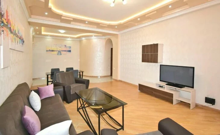 Տրվում է վարձով 3 սենյականոց բնակարան նորակառույց շենքում Արամի փողոցում, 137 քմ, նախավերջին հարկ, 2 սանհանգույց բնակարանը հագեցված է անրաժեշտ գույքով և տեխնիկայով։