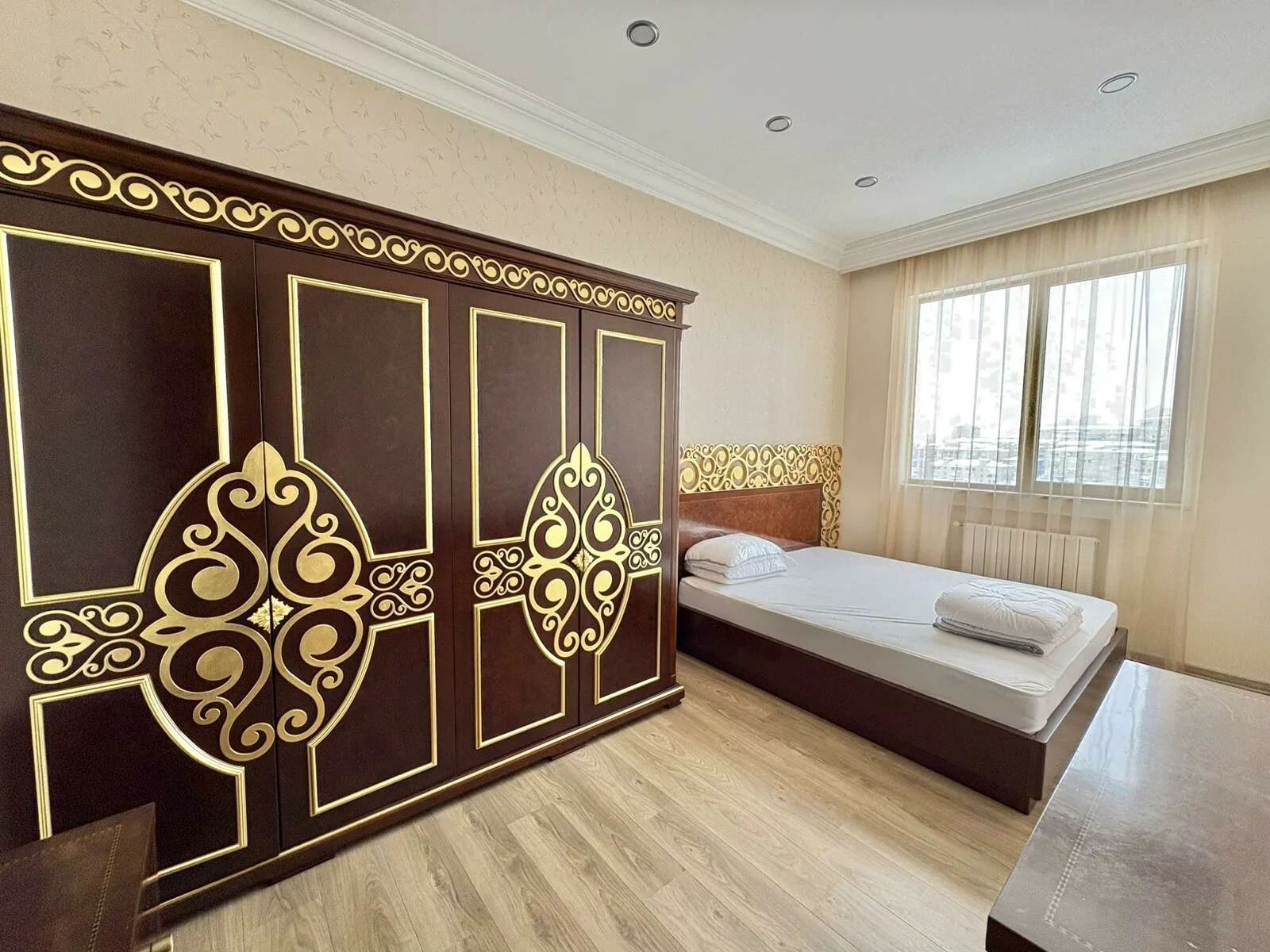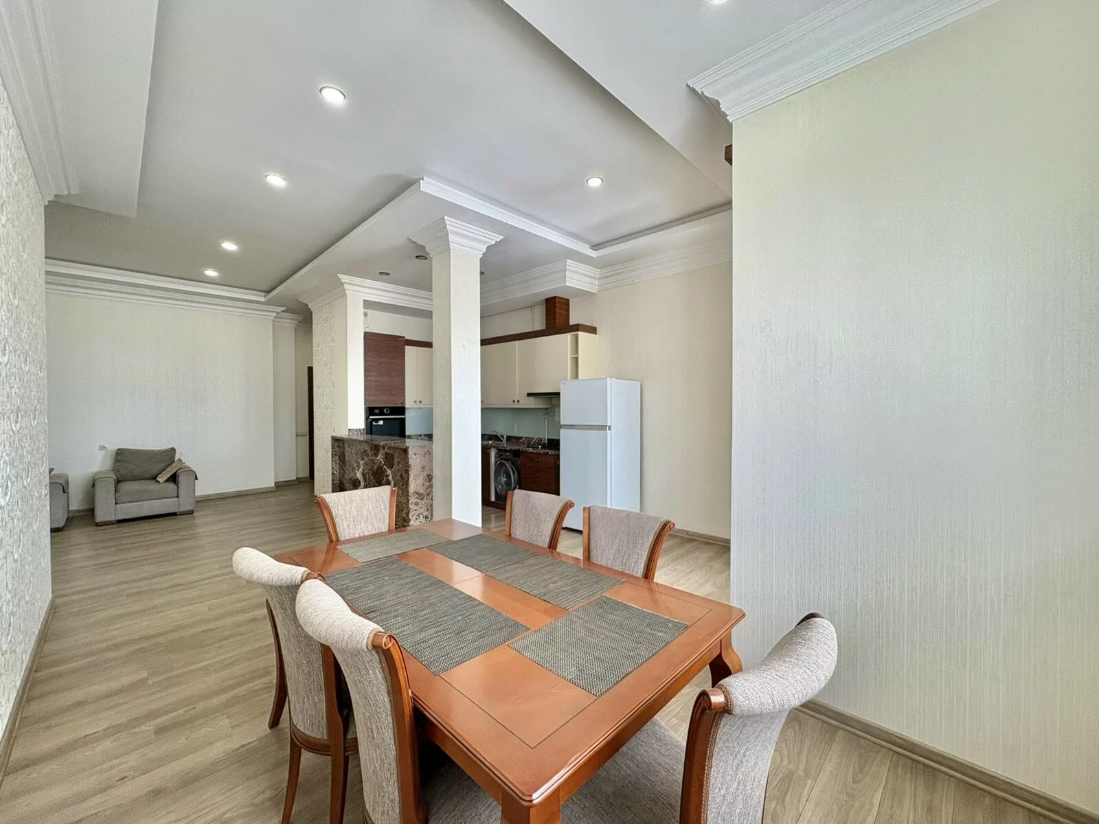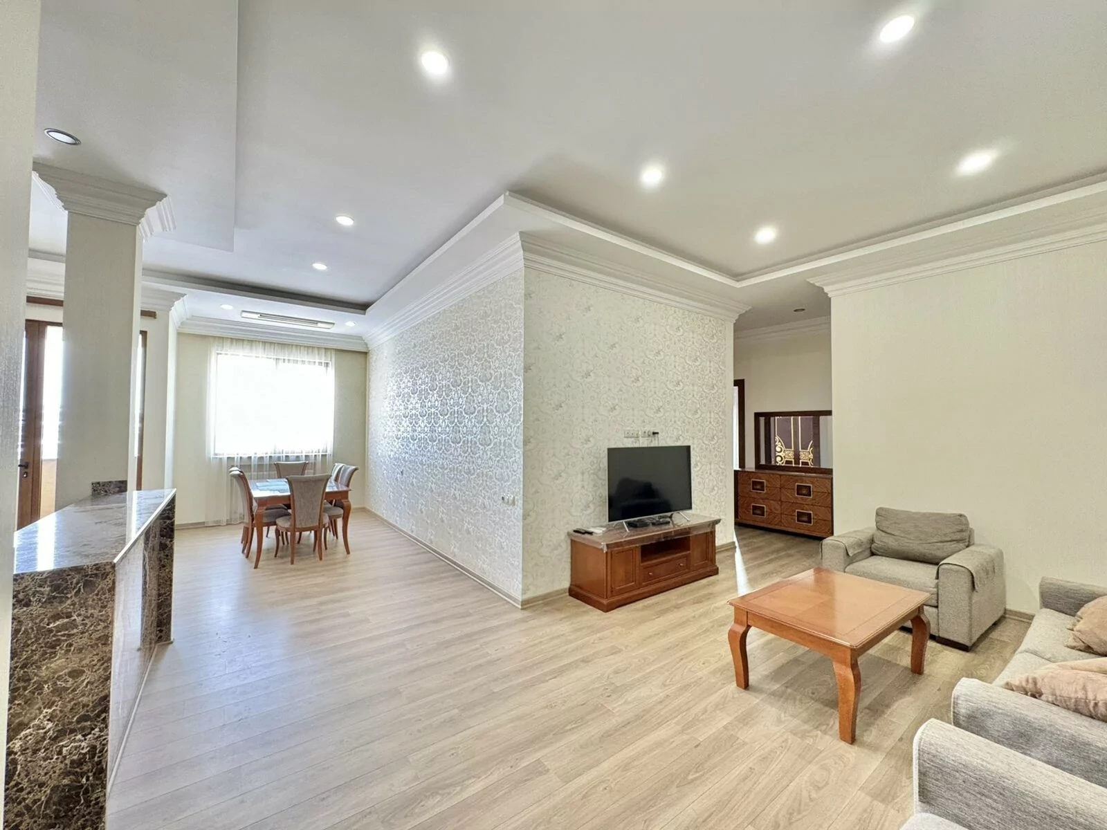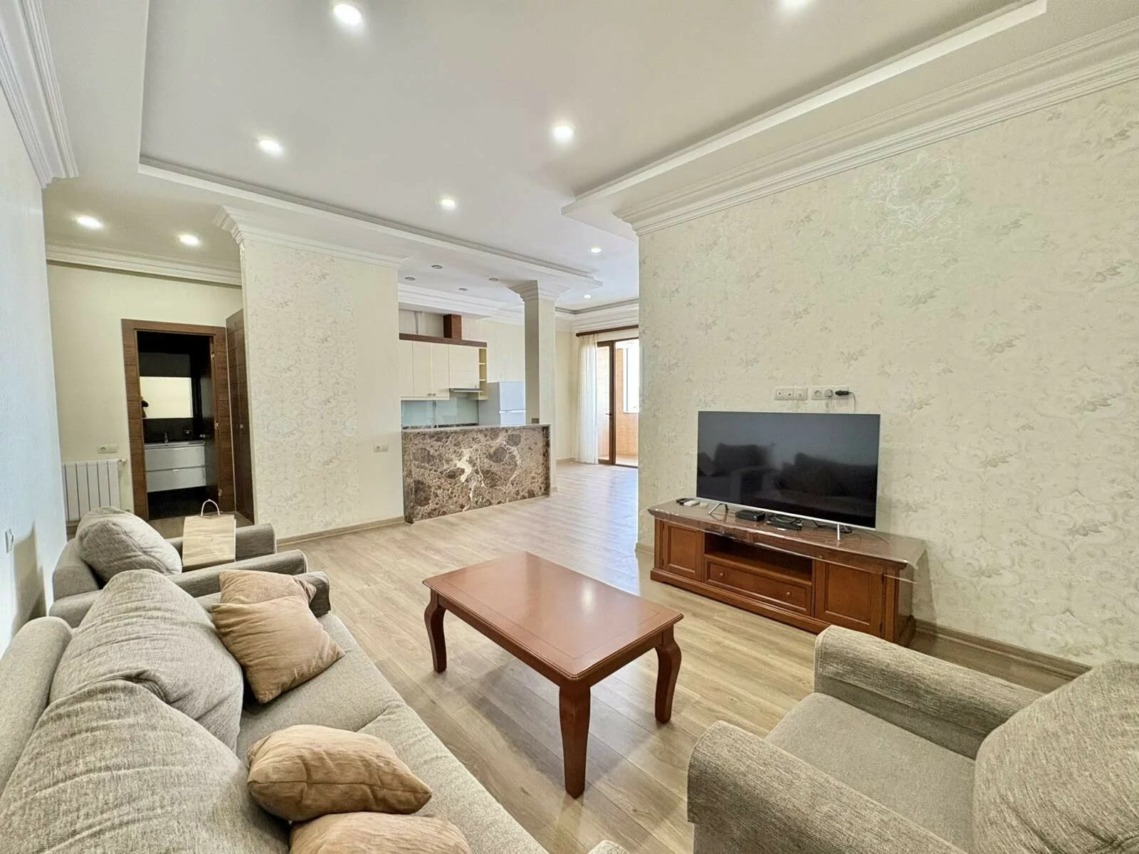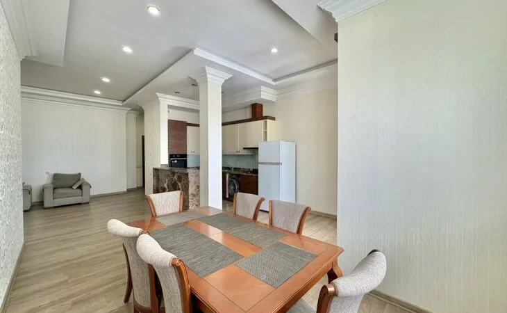 Վարձով է տրվում 4 սենյականոց բնակարան, բոլոր հարմարություններով, կապիտալ վերանորոգված։ Անհատական ջեռուցման համակարգ, օդորակիչ բոլոր սենյակներում, 3 սանհանգույց-լոգարան, մի քանի բաց պատշգամբ, արևկողմ։ Մոտակայքում են գտնվում բոլոր հասարակական ենթակառուցվածքները։
