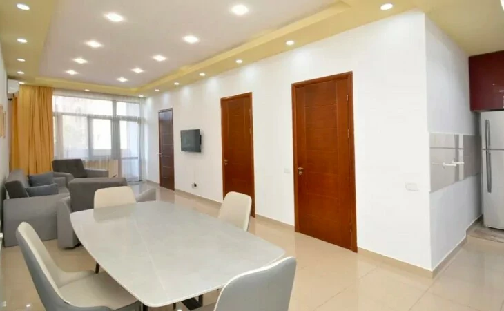 Վարձով է տրվում 3 սենյականոց բնակարան նորակառույց շենքում Արամի փողոցում կենտրոնում, 80 քմ, 3/10 հարկ, առկա է անհրաժեշտ բոլոր կոմունալ հարմարությունները։