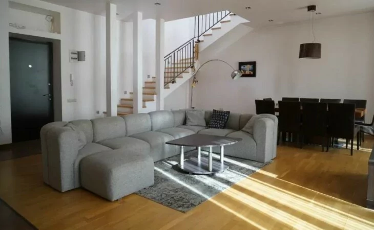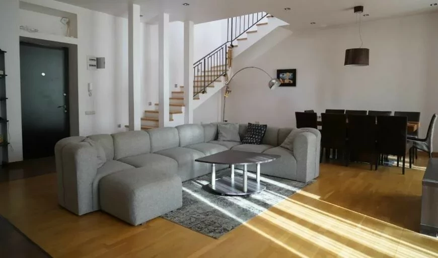 Բնակարանը գտնվում է շենքի 3-րդ և 4-րդ հարկերում, մուտքը 3-րդ հարկից։ Կապիտալ վերանորոգված և կահավորված է։ Տրվում է երկարաժամկետ վարձակալության։ Բնակարանից բացվում է գեղեցիկ տեսարան դեպի այգի։