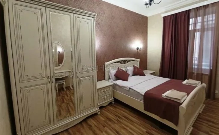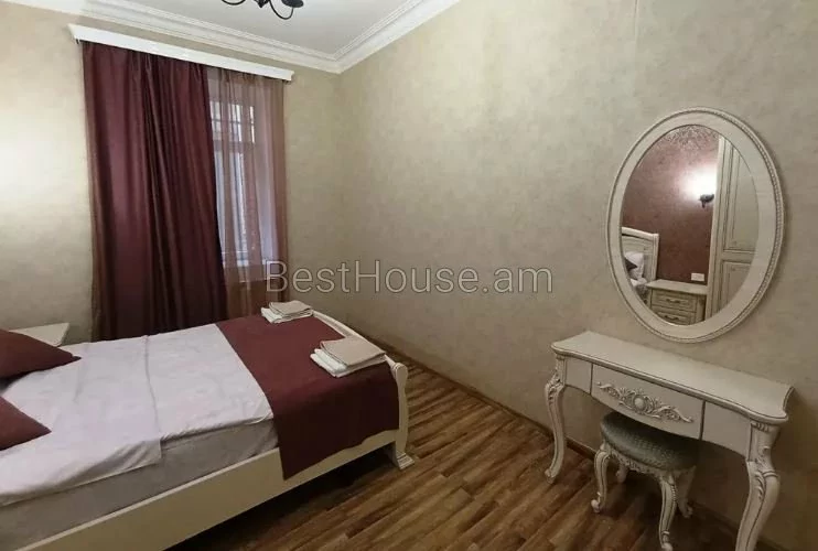 Փարպեցի և Թումանյան փողոցների խաչմերուկում, 5 հարկանի քարե շենքի 4-րդ հարկում, օրավարձով է տրվում 3 սենյականոց բնակարան, որը ունի 2 սանհանգույց: Բնակարանը վերանորոգված և կահավորված է ժամանակակից ոճով: Ապահովված է մշտական տաք և սառը ջրով, բնական գազով, կենցաղային տարատեսակ տեխնիկայով, SMART TV, WI FI INTERNET, բարձրակարգ սպասքով և անկողնային պարագաներով: