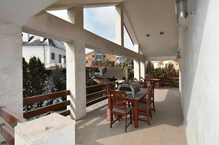 В экологически чистом элитном районе Ваагни города Еревана продается или сдается в аренду 4-х этажный отдельно стоящий дом, построенный с использованием современных решений. Общая площадь здания составляет 1000 квадратных метров, площадь земельного участка — 700 квадратных метров. В доме выполнен качественный ремонт, панорамные окна, индивидуальная система отопления, кондиционеры, пол покрыт высококачественным ламинатом и плиткой, ванные комнаты облицованы европейской плиткой и оснащены сантехникой. Состоит из просторной гостиной, кухни, 5 спален, 5 ванных комнат, имеет гардеробные, кабинет, кладовую, кладовую, тренажерный зал, игровую комнату, крытый бассейн и несколько открытых балконов с прекрасным видом. Комнаты светлые и уютные, обставлены современной стильной мебелью, оснащены бытовой техникой и всеми необходимыми предметами домашнего обихода. Во дворе есть летняя кухня. Есть парковка на 2 машины. В районе Ваагни есть все условия для благополучной, беззаботной жизни. В районе круглосуточная охрана, зеленые зоны постоянно обслуживаются садовниками, улицы чистые и ухоженные, осуществляется вывоз мусора. Здесь есть частные дома разных стилей, таунхаусы, клуб Ararat Valley с бассейном, большие и малые поля для гольфа, теннисные корты, детская площадка. Налоги включены в стоимость.