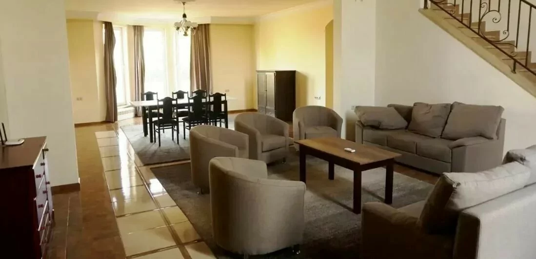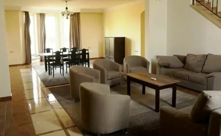 ...В районе Вахагни сдается в аренду дом с 6 комнатами. Дом оборудован всем необходимым, мебелью и бытовой техникой. В доме 5 спален, 3 ванные комнаты (одна в спальне, другая в коридоре, одна на первом этаже), 1 гостиная и кухня на первом этаже, 1 спальня в полуподвале.