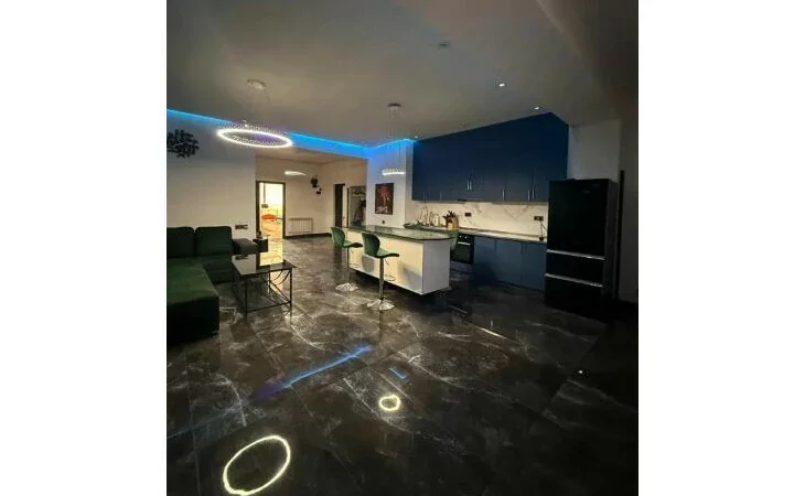 Площадь квартиры — 110 кв. м, высота потолков — 3,5 метра. Продаётся со всей мебелью и техникой.