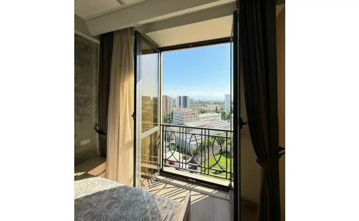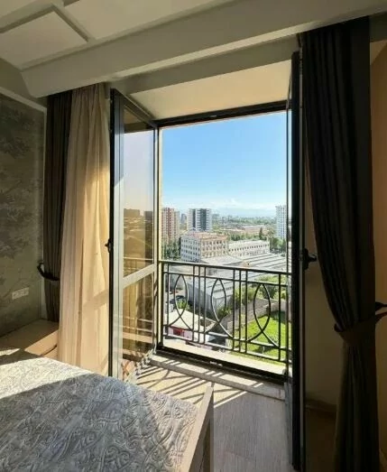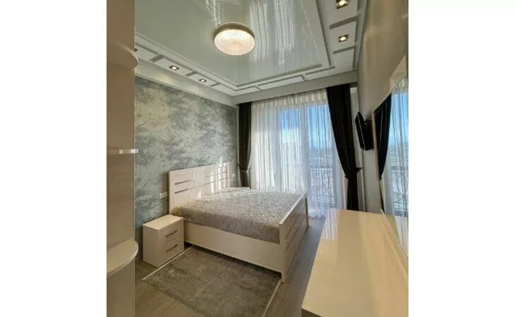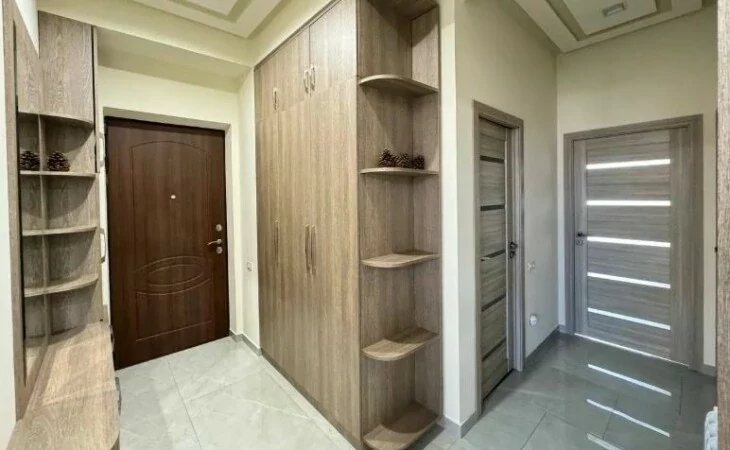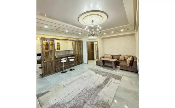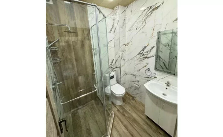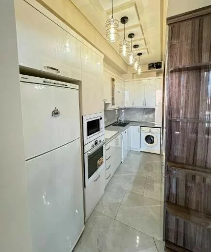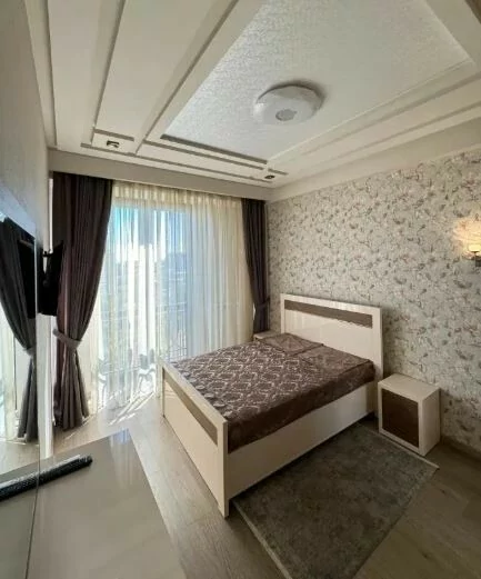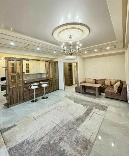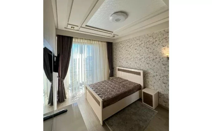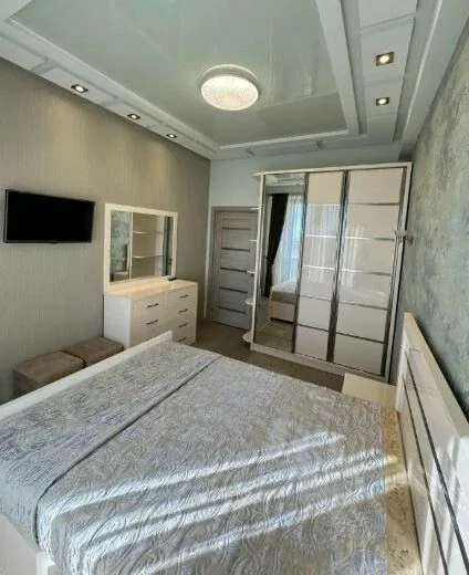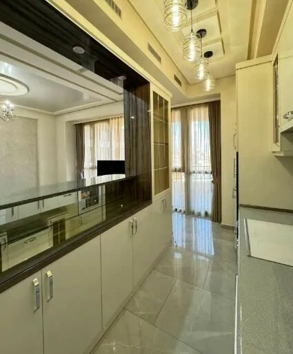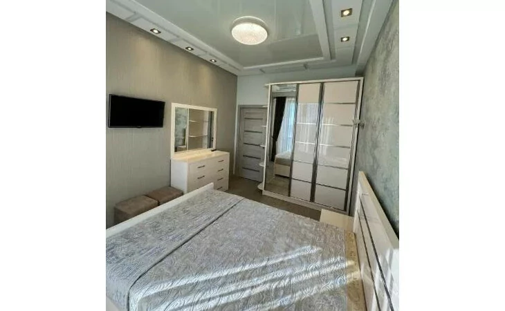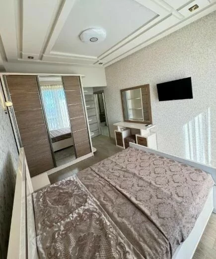 Сдается 3-комнатная квартира на 9 этаже 18-этажного новостройки. В квартире выполнен современный ремонт. Входная дверь железная, окна евро, санузлы выложены кафелем и оборудованы необходимой сантехникой. В квартире: просторная и светлая гостиная, 2 спальни, 2 ванные комнаты, открытый балкон, кондиционер, система отопления, телевизоры. На кухне имеется все необходимое сантехническое оборудование. Квартира сдается со всем имуществом и оборудованием. Вместе с квартирой сдается и парковка (с запирающимися воротами).