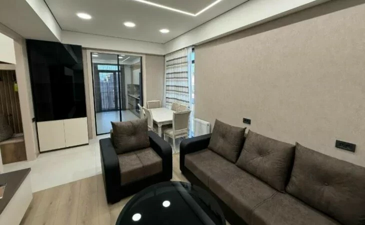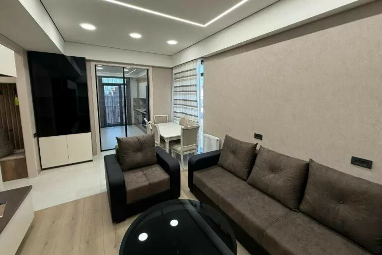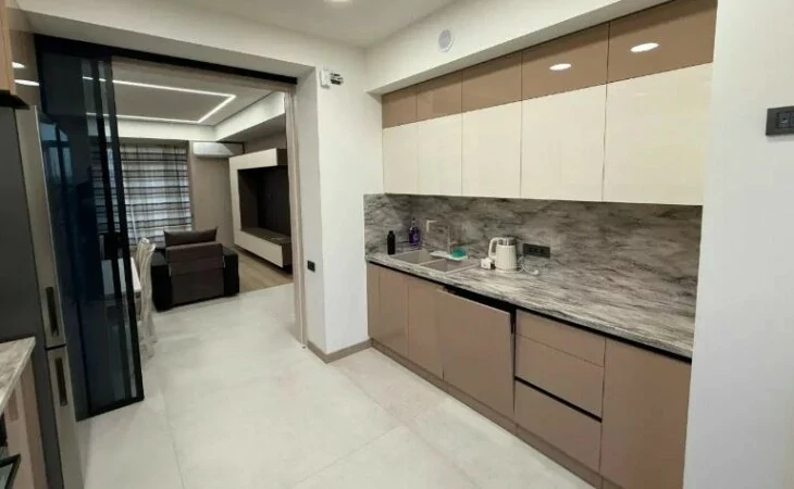 Квартира новая, нежилая, обставлена современной мебелью, расположена рядом с Олимпаваном; Сзади имеется парковка на 1 машину.