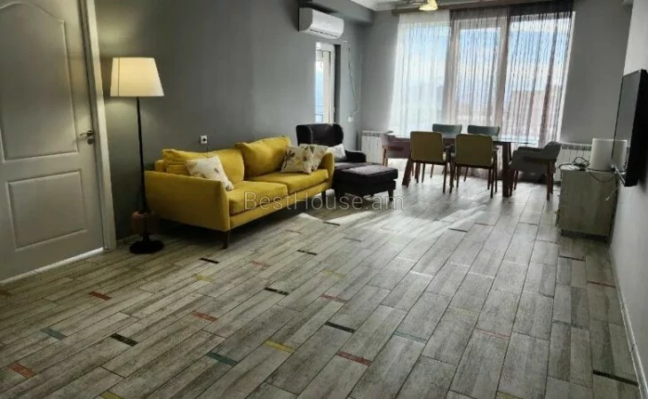 Сдается 3-комнатная квартира в новостройке по улице Паруйра Севака. В квартире есть необходимая мебель, бытовая техника, а также кондиционер. Дом светлый, полностью отремонтирован, имеет вид на гору Арарат, а также небольшой сад. Улица тихая и полная деревьев. Рядом продуктовые и хозяйственные магазины. На территории дома оборудована детская игровая площадка, а также парковка для автомобилей жильцов. В доме есть меблированная комната для двоих детей, которую можно использовать и как кабинет. Здание размещено на специальных сейсмических площадках. В здании работает служба безопасности.