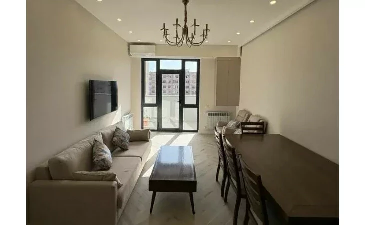 Сдается уютная 3-комнатная квартира в новостройке по улице Паруйра Севака, площадью 76 кв.м., квартира укомплектована необходимой мебелью и техникой.