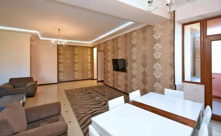 Сдается уютная 3-комнатная квартира в новостройке на улице Грачья Нерсисяна, площадью 104 кв.м. Квартира оборудована необходимой мебелью и техникой.