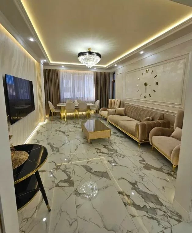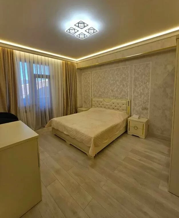 Сдается светлая и красивая 3-комнатная квартира в новостройке на улице Монте Мелконяна, 99 квадратных метров, 2 санузла, квартира оборудована необходимой мебелью и техникой.