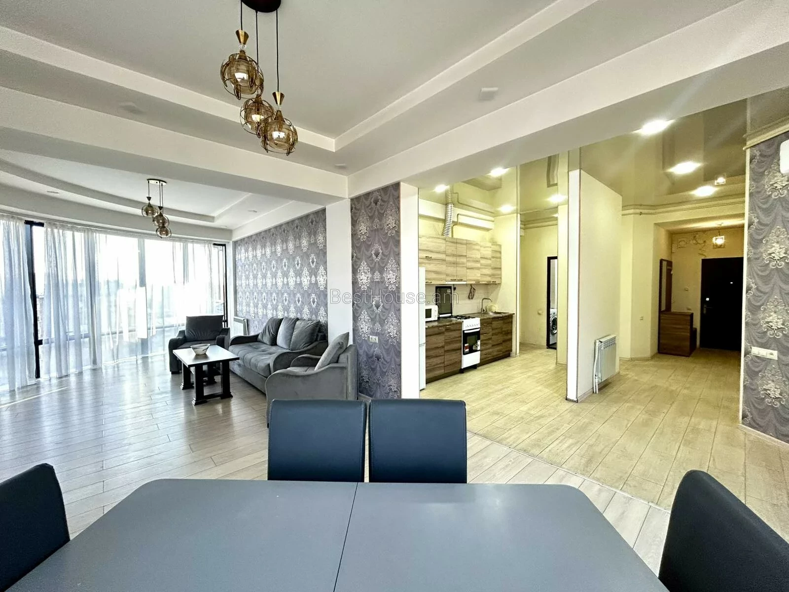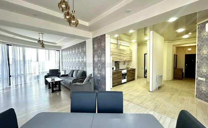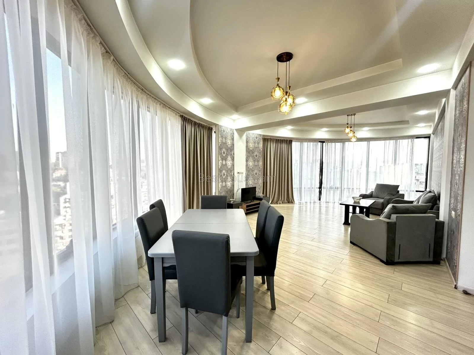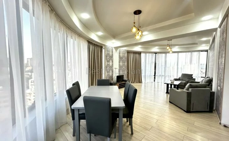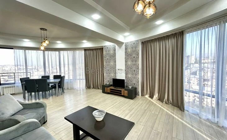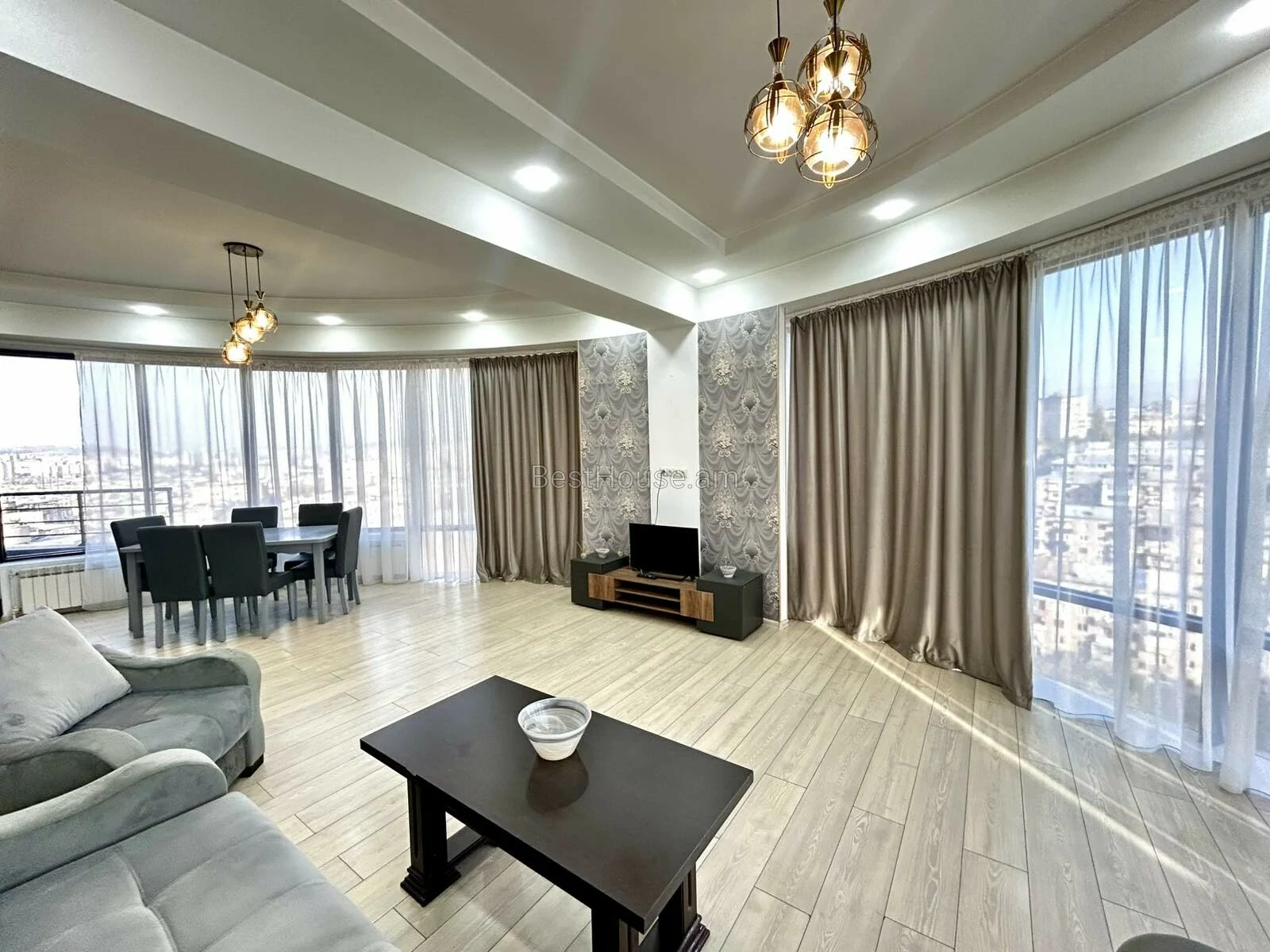 Сдается в аренду 3-комнатная квартира площадью 140 квадратных метров с евроремонтом, панорамными окнами и видом на город. Квартира находится на солнечной стороне, рядом расположен ТЦ Мега и другая различная инфраструктура.