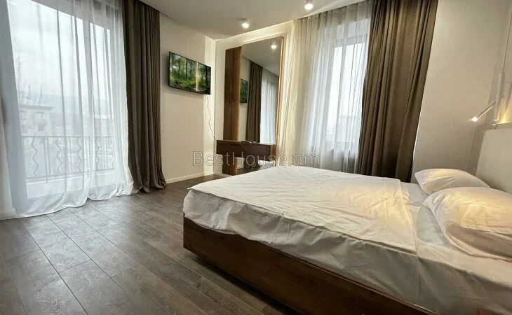 Имеет три балкона: два открытых и один закрытый с панорамными окнами. Одно из открытых подземелий и закрытый балкон выходят на Оперный театр и гору Арарат, а другой открытый балкон выходит на комплекс Каскад и парк.