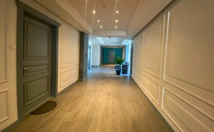 Вход в квартиру начинается с запертых защитных дверей и вестибюля в курортном стиле, персонал поможет вам добраться до вашей квартиры, в здании есть несколько балконов, а также 2 уровня частных гаражей и бассейн, из которого открывается потрясающий вид на центр города. городская опера. Прямо у входа в вашу квартиру находится коридор, который ведет в огромную гостиную с кухней в европейском стиле, стиральной машиной, холодильником, винным погребом с мраморным полом, соответствующим дизайну потолка.