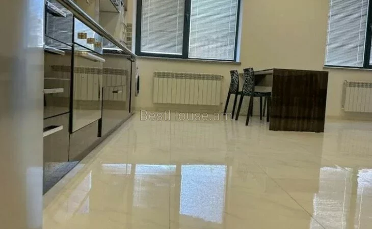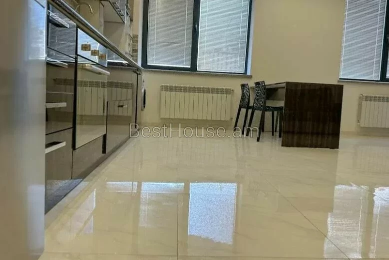 Гостиная плавно переходит в столовую, кухня ярко-черного цвета с роскошным каменным цветом и огромная гостиная с двумя огромными окнами, выходящими на террасу.