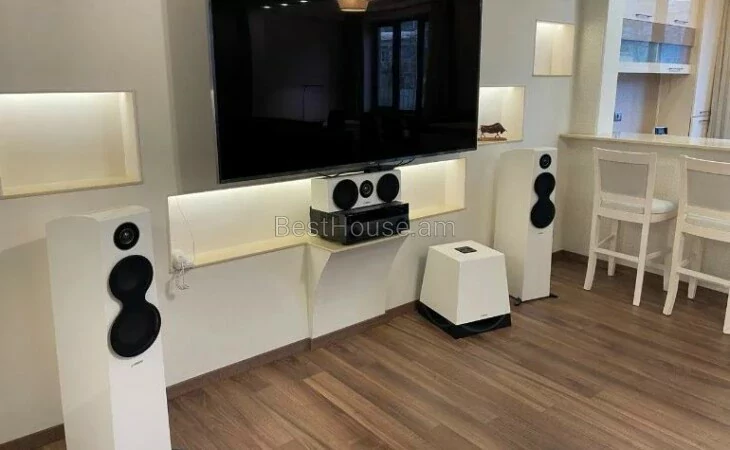 • Домашний кинотеатр с 80-дюймовым телевизором и звуком 5.1 от Yamaha для любимых фильмов и сериалов или просто музыки.