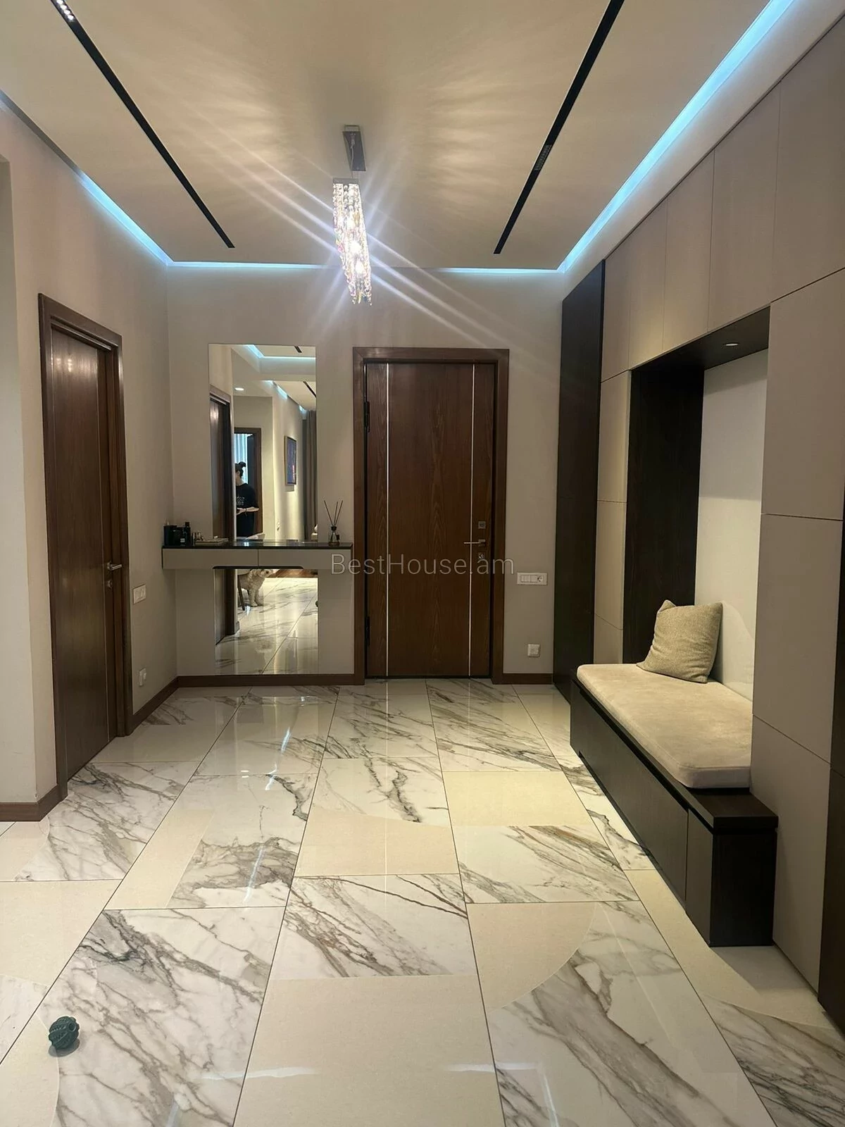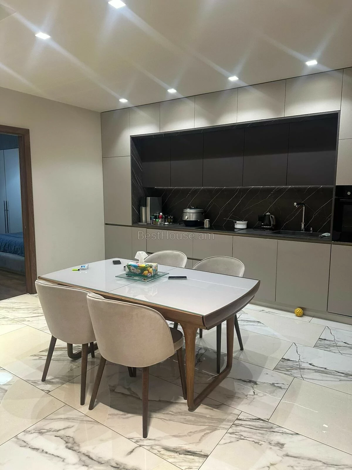 Сдается 4-комнатная квартира со всеми удобствами в строящемся доме. Все общественные места находятся поблизости.