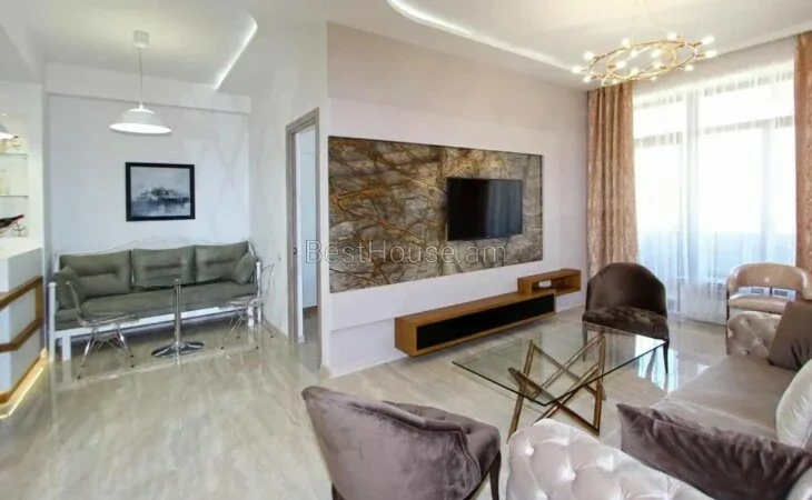Сдается светлая и красивая 2-комнатная квартира в строящемся доме на улице Екмаляна, 60 квадратных метров, квартира укомплектована необходимым имуществом и бытовой техникой.