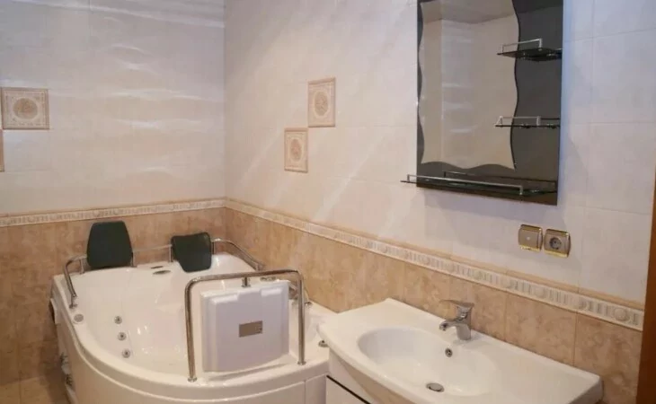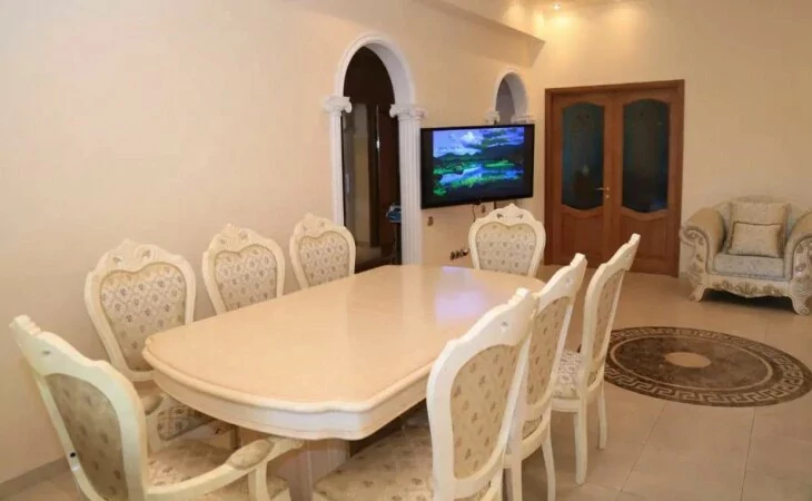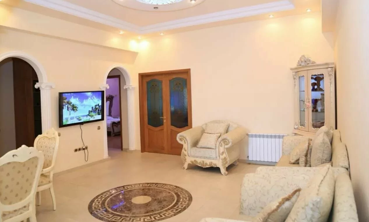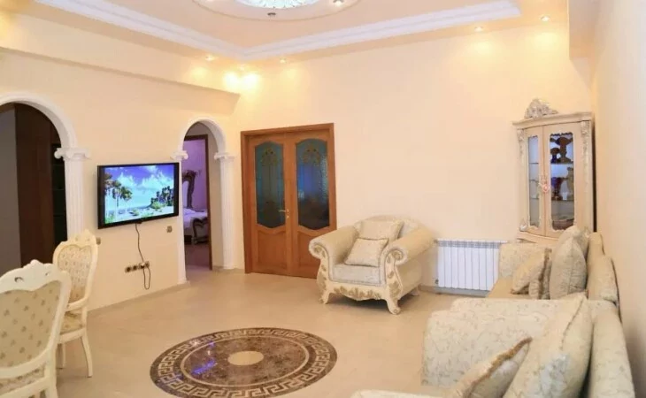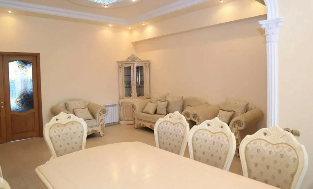 Сдается красивая просторная 4-комнатная квартира в строящемся доме, на улице Аргишти, 150 кв.м., 2 санузла, квартира укомплектована необходимой мебелью и техникой.