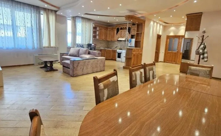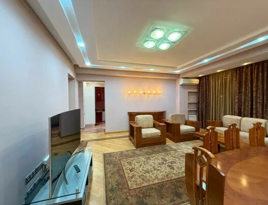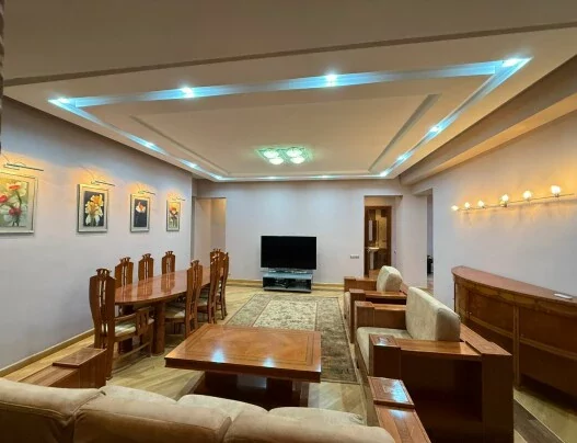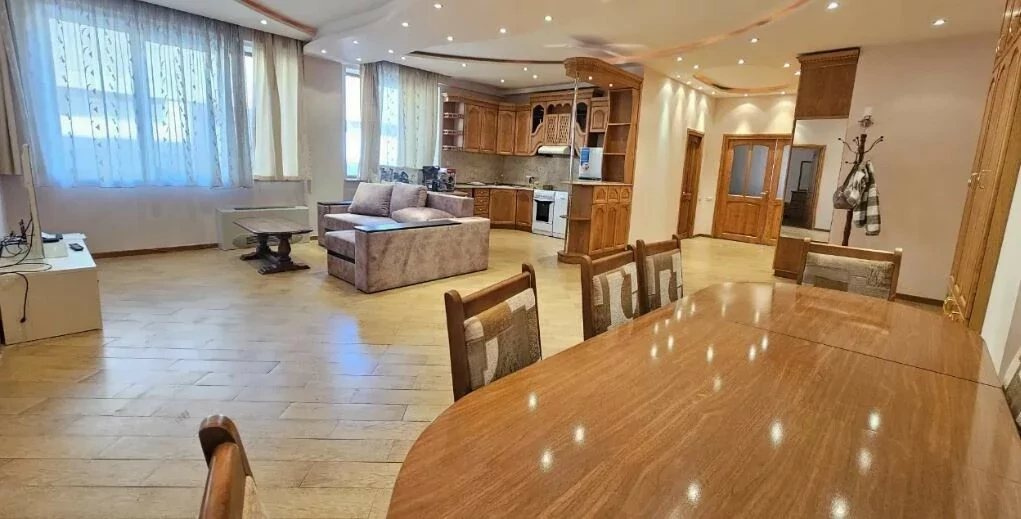Сдается 4-комнатная квартира в центре, на Северном проспекте. Квартира полностью отремонтирована, установлены евроокна, имеется индивидуальная система отопления, гардеробная и кондиционер. Продается вместе с мебелью и техникой. За здание также взимается плата за обслуживание в размере 30 000 драмов.