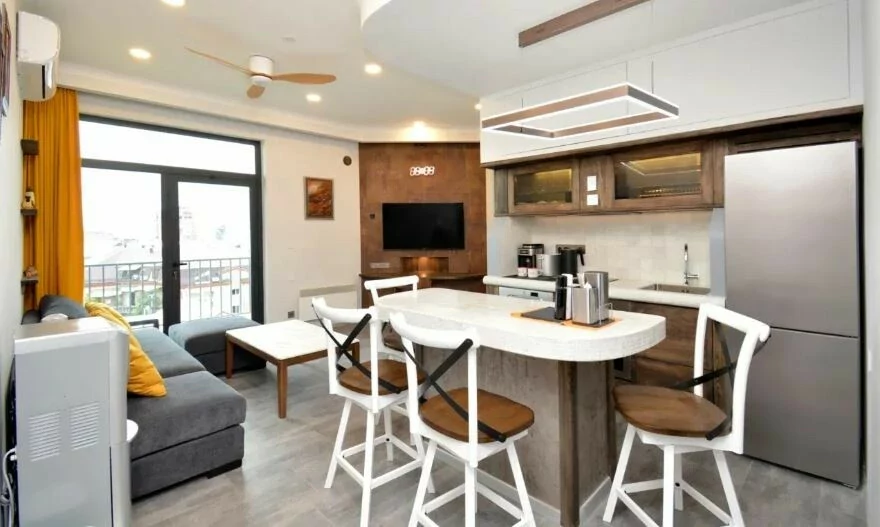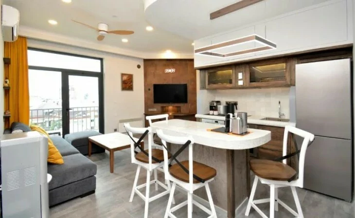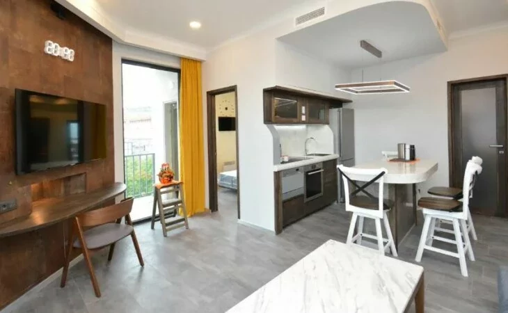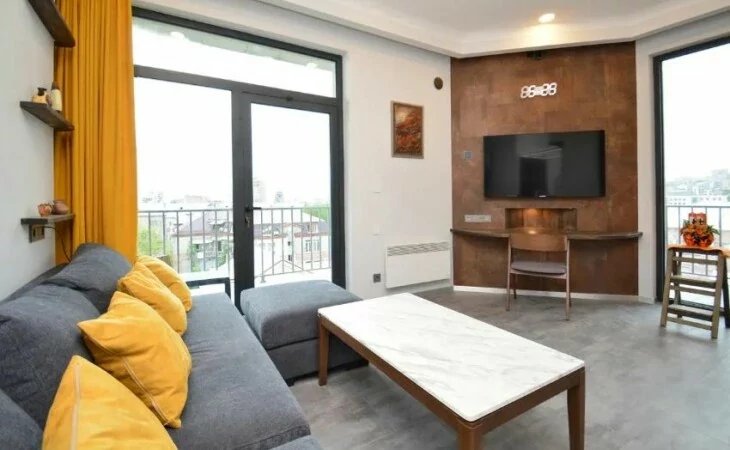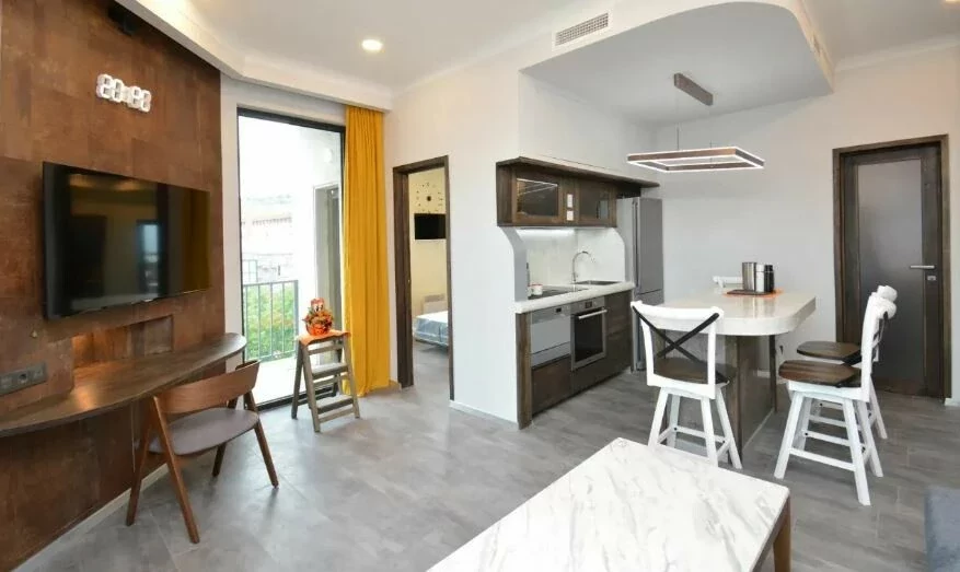 На улице Абовяна сдается в аренду 2-комнатная квартира, с ремонтом в красивом дизайнерском стиле, оснащенная всеми инженерными коммуникациями.
