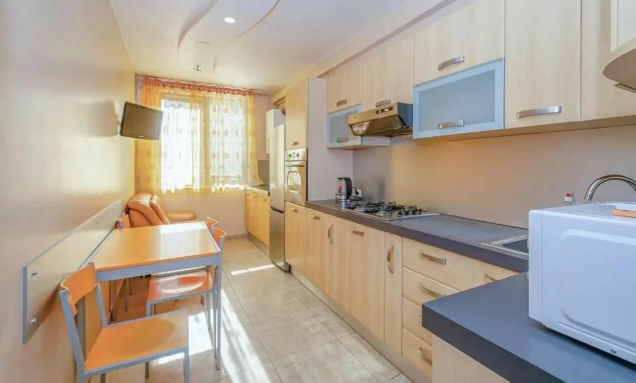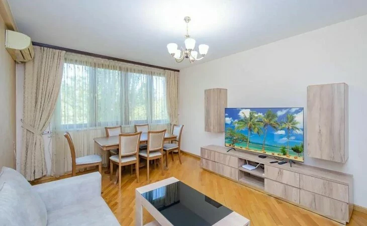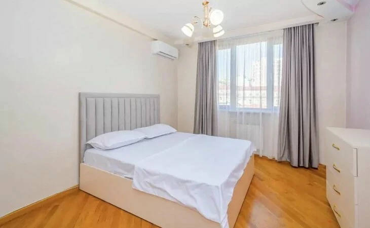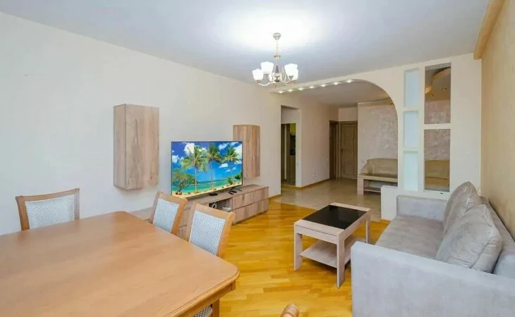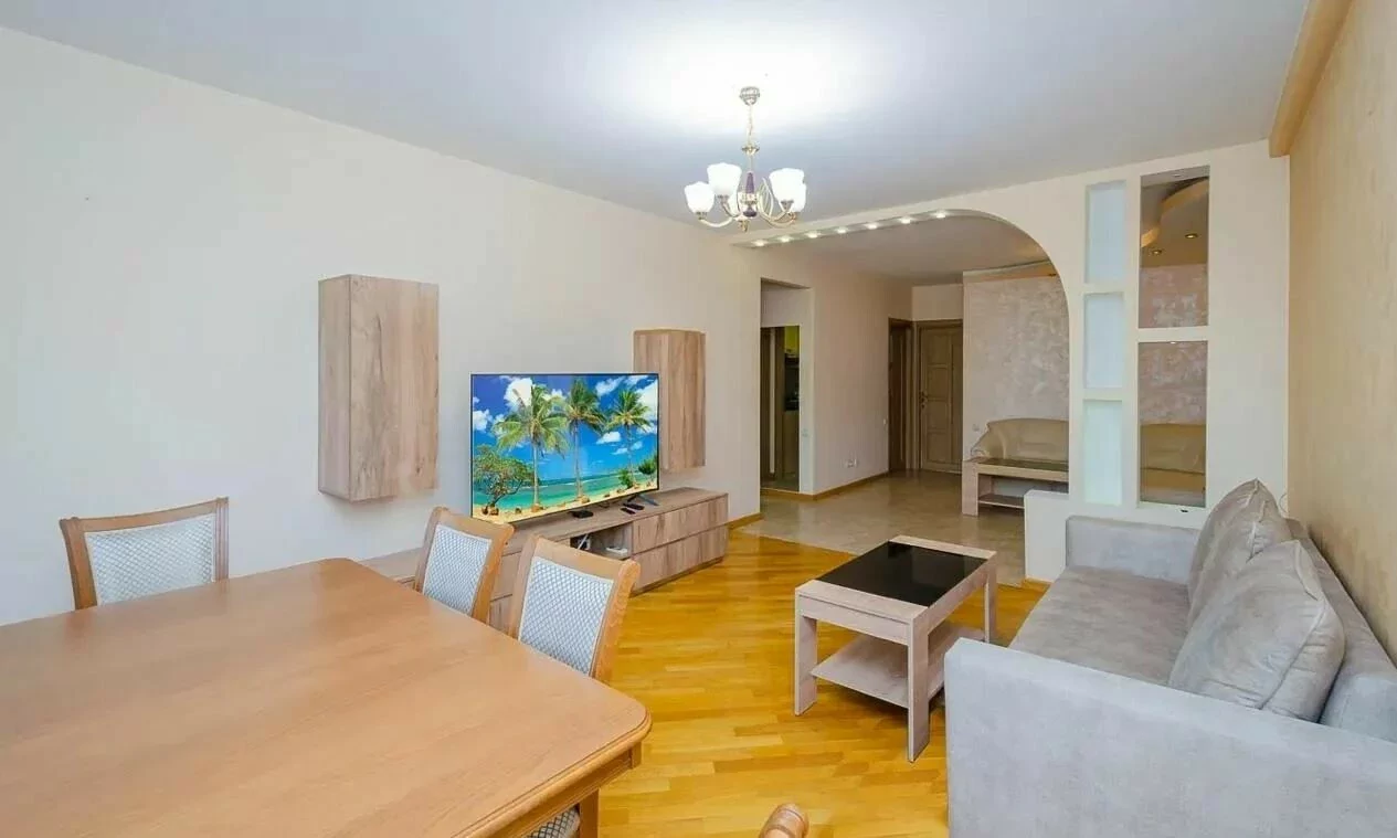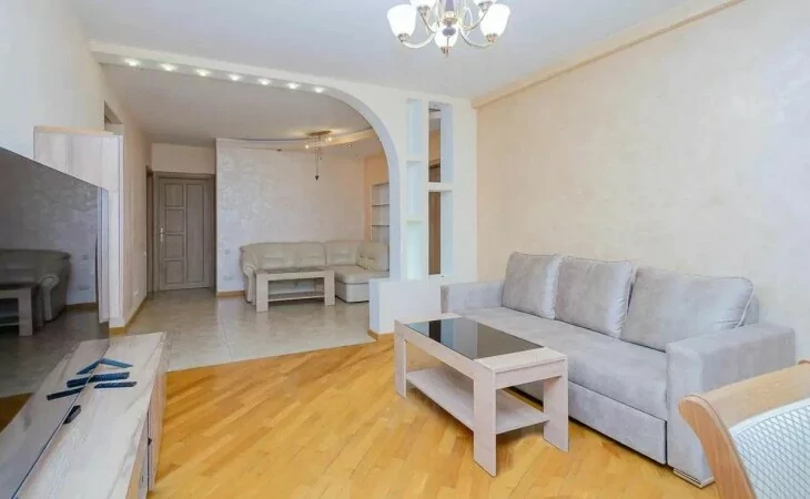 Сдается красивая светлая 3-комнатная квартира на улице Туманяна, 97 квадратных метров, квартира оборудована необходимым имуществом и бытовой техникой.