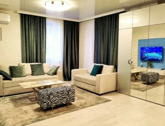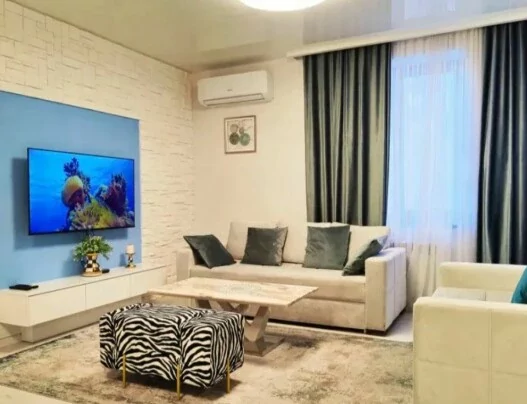 Сдается красивая 2-комнатная квартира в новостройке, в центре возле Каскада, 68 квадратных метров, квартира укомплектована необходимой бытовой техникой и имуществом.