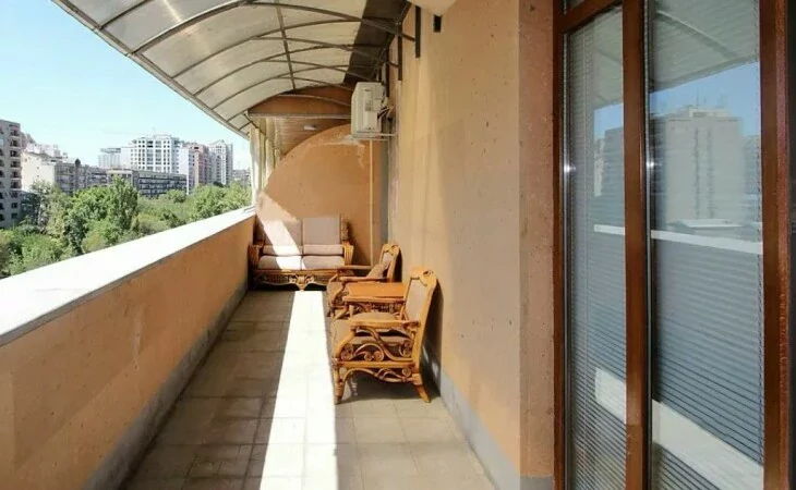 Сдается светлая и красивая 3-комнатная квартира в строящемся доме по улице Арами, 130 кв.м., 2 санузла, квартира укомплектована необходимой мебелью и техникой.