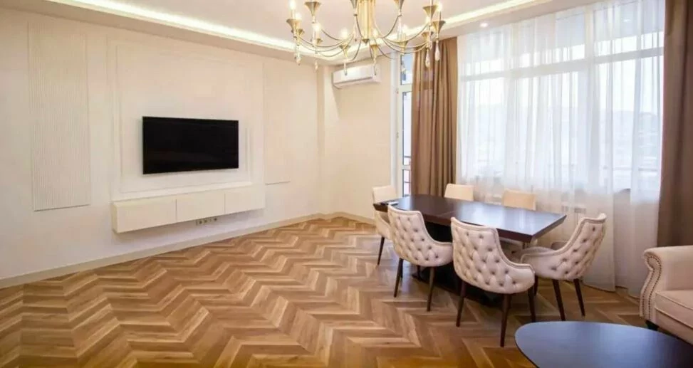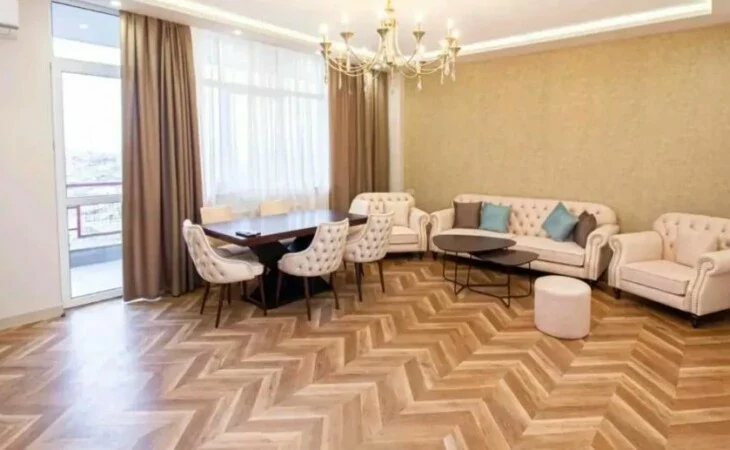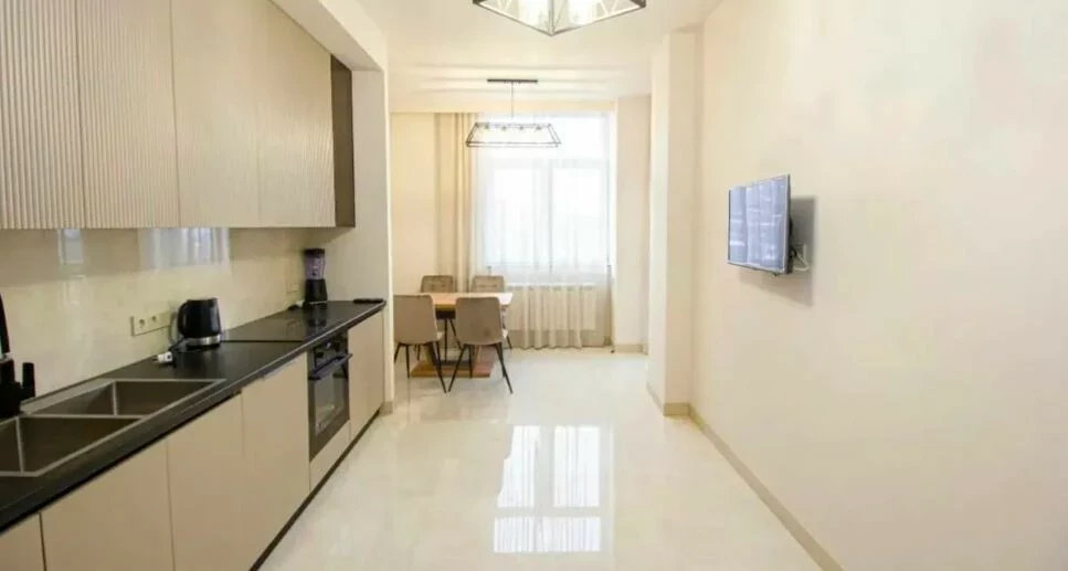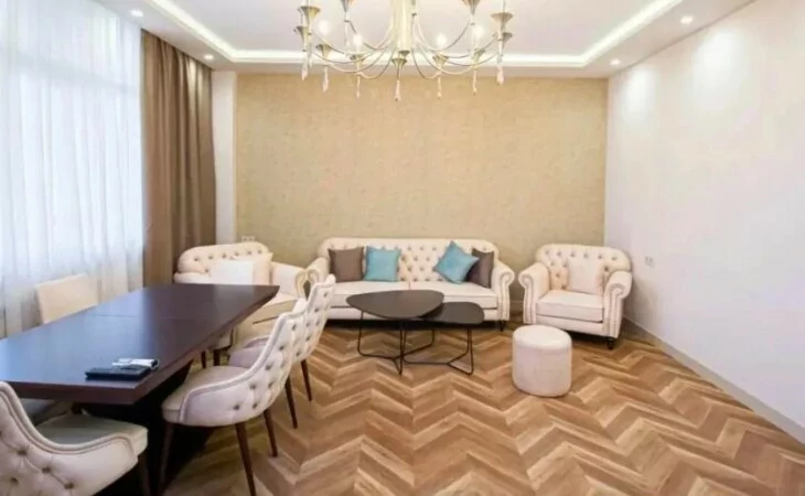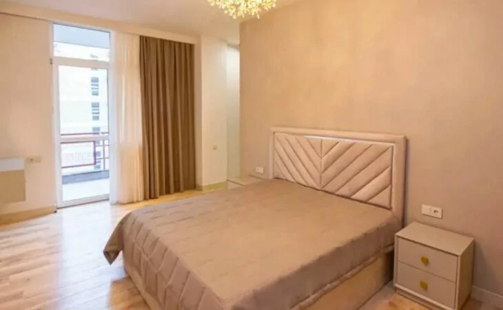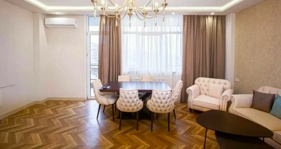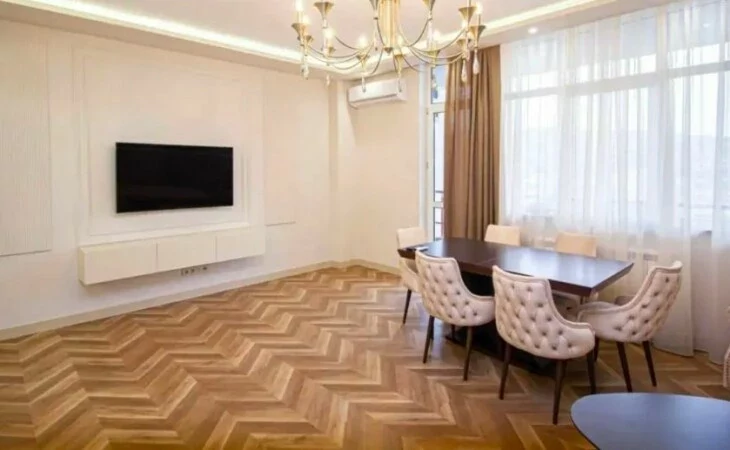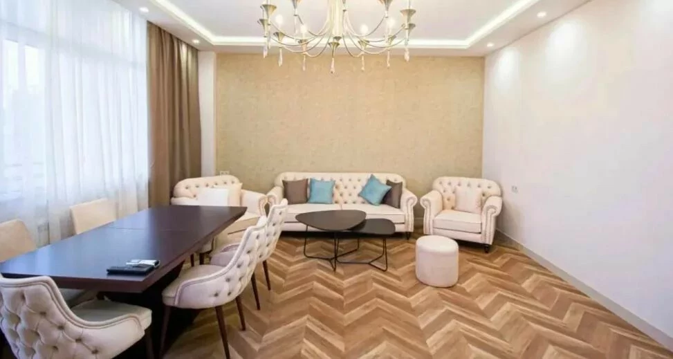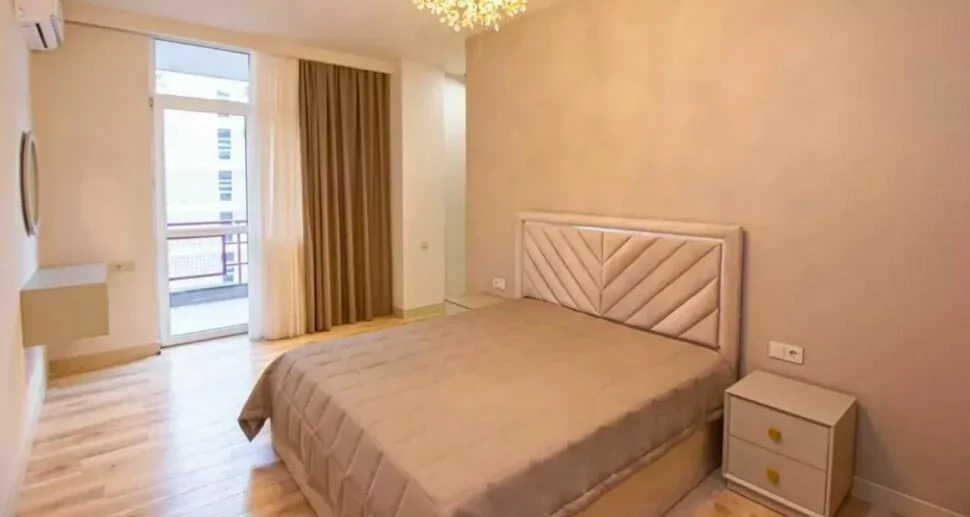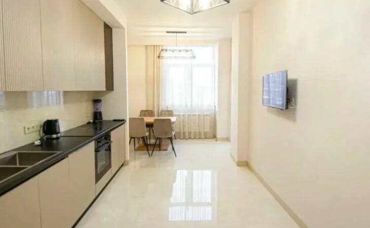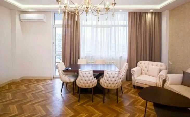 Сдается 3-комнатная квартира в центре, на улице Ростоми. Расположена на 7 этаже 9-этажного дома. Он занимает площадь 135 квадратных метров. Евроокна, система отопления, санузлы выложены плиткой. Также имеется система отопления, 2 телевизора, стиральная машина-автомат и 2 просторных балкона. Сдается с мебелью и техникой. Рядом расположены школы, магазины, супермаркеты, автобусные остановки и развлекательные заведения. Есть учебный центр для школьников, детский сад и стоматологическая поликлиника.