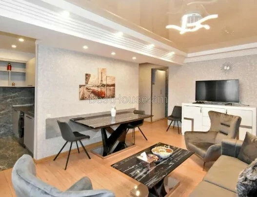 Сдается 3-комнатная квартира в новостройке по улице Верин Антарай, 120 квадратных метров, 2 санузла, квартира укомплектована необходимым имуществом и бытовой техникой.