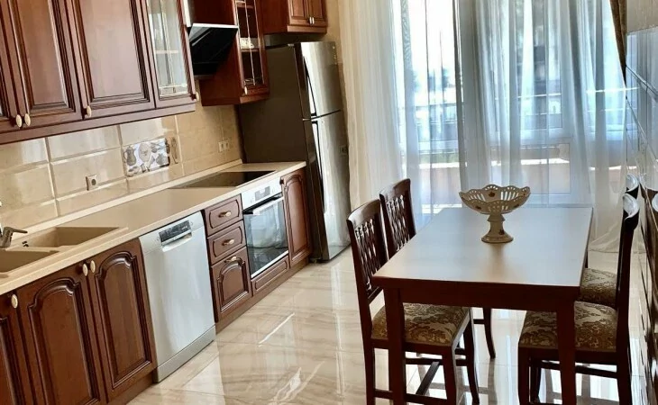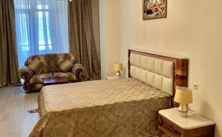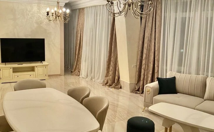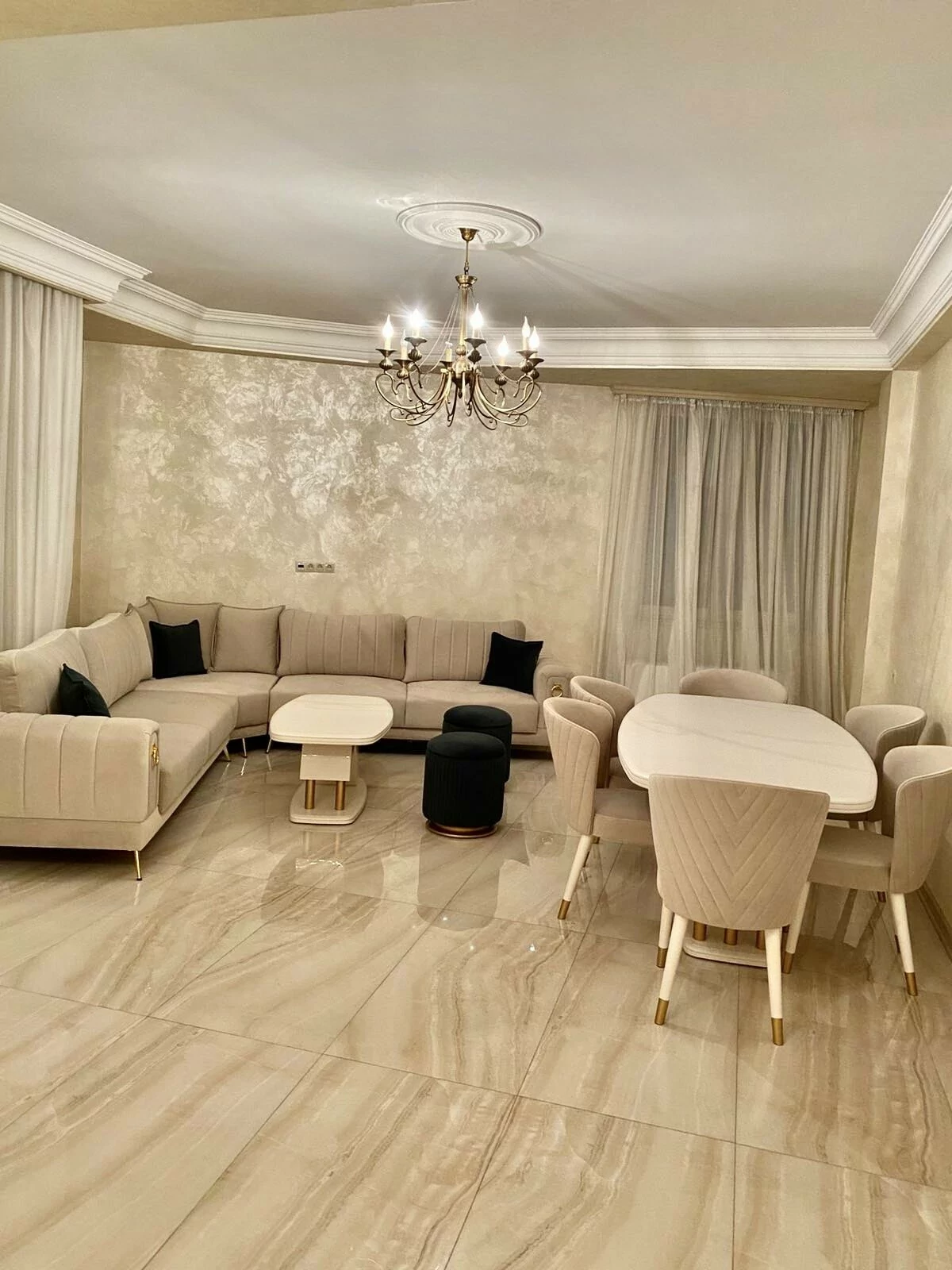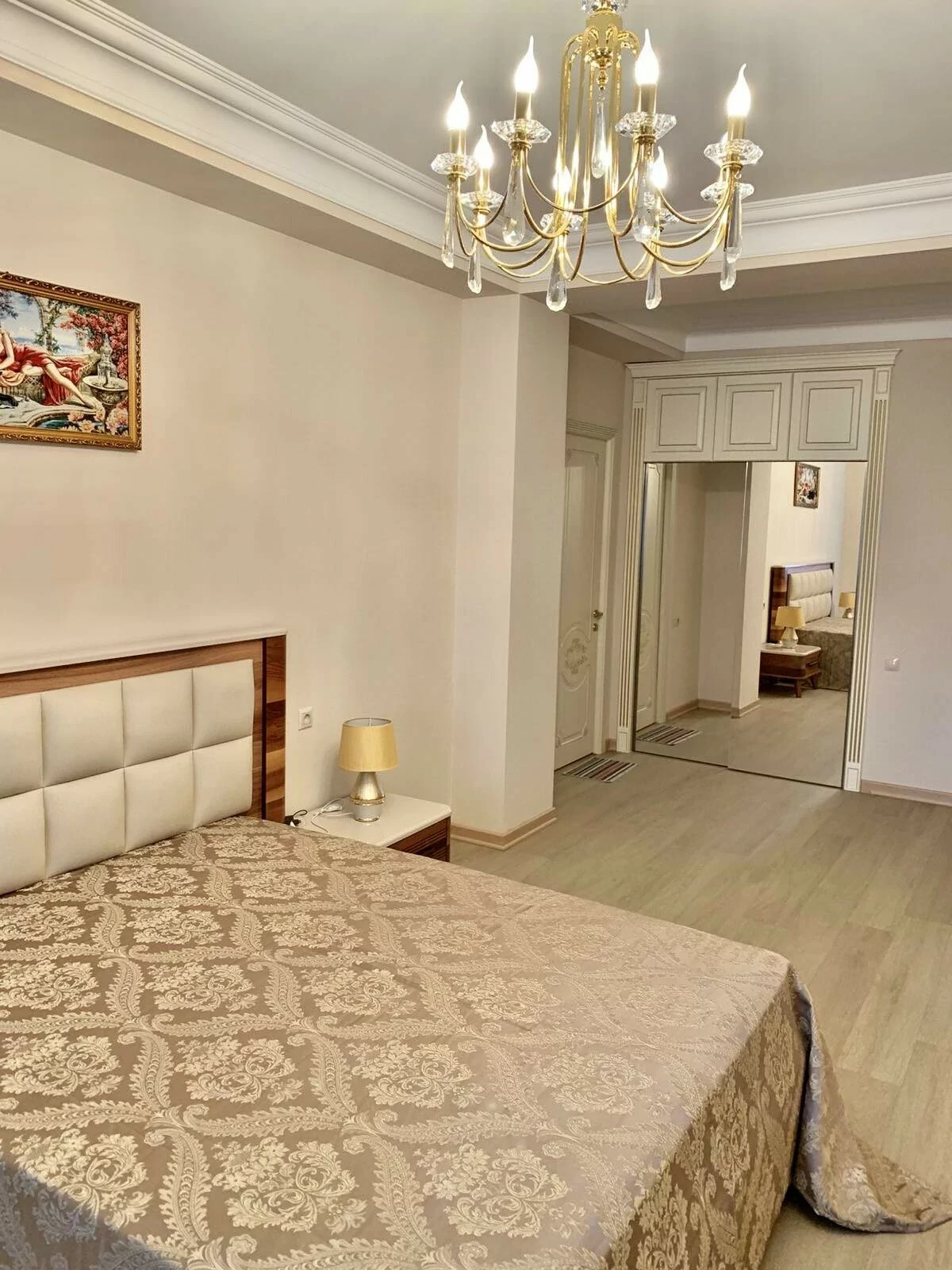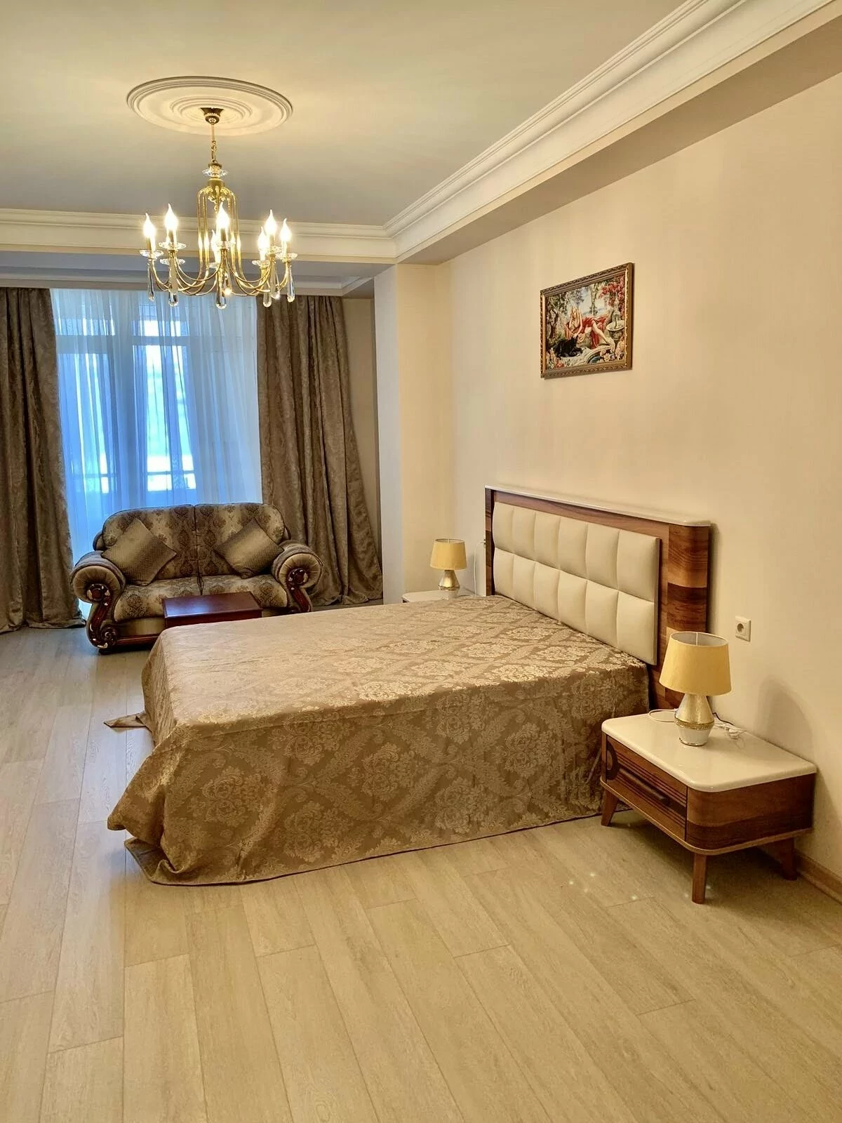 Сдается 4-комнатная квартира площадью 195 квадратных метров. М. Квартира расположена на улице Саят-Нова, на 8 этаже 22-этажного новостройки. Железная дверь, евроокна, кондиционер. Отапливается системой отопления. Обеспечен круглосуточным водоснабжением и газоснабжением. Санузел облицован кафелем, оборудован сантехникой. Есть открытый балкон. Квартира оборудована мебелью и бытовой техникой. С открытого балкона открывается прекрасный вид.