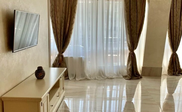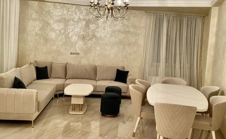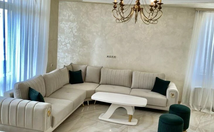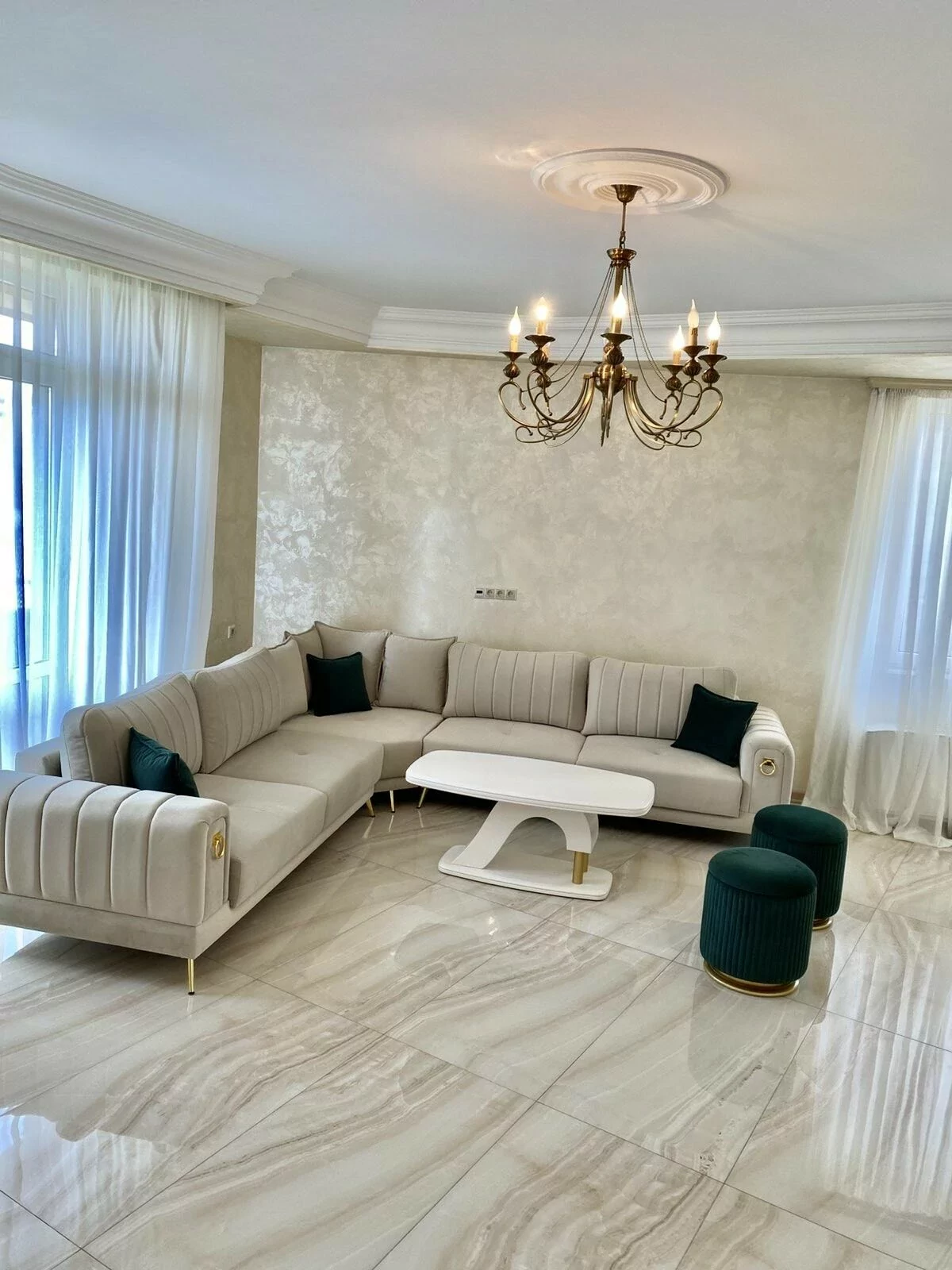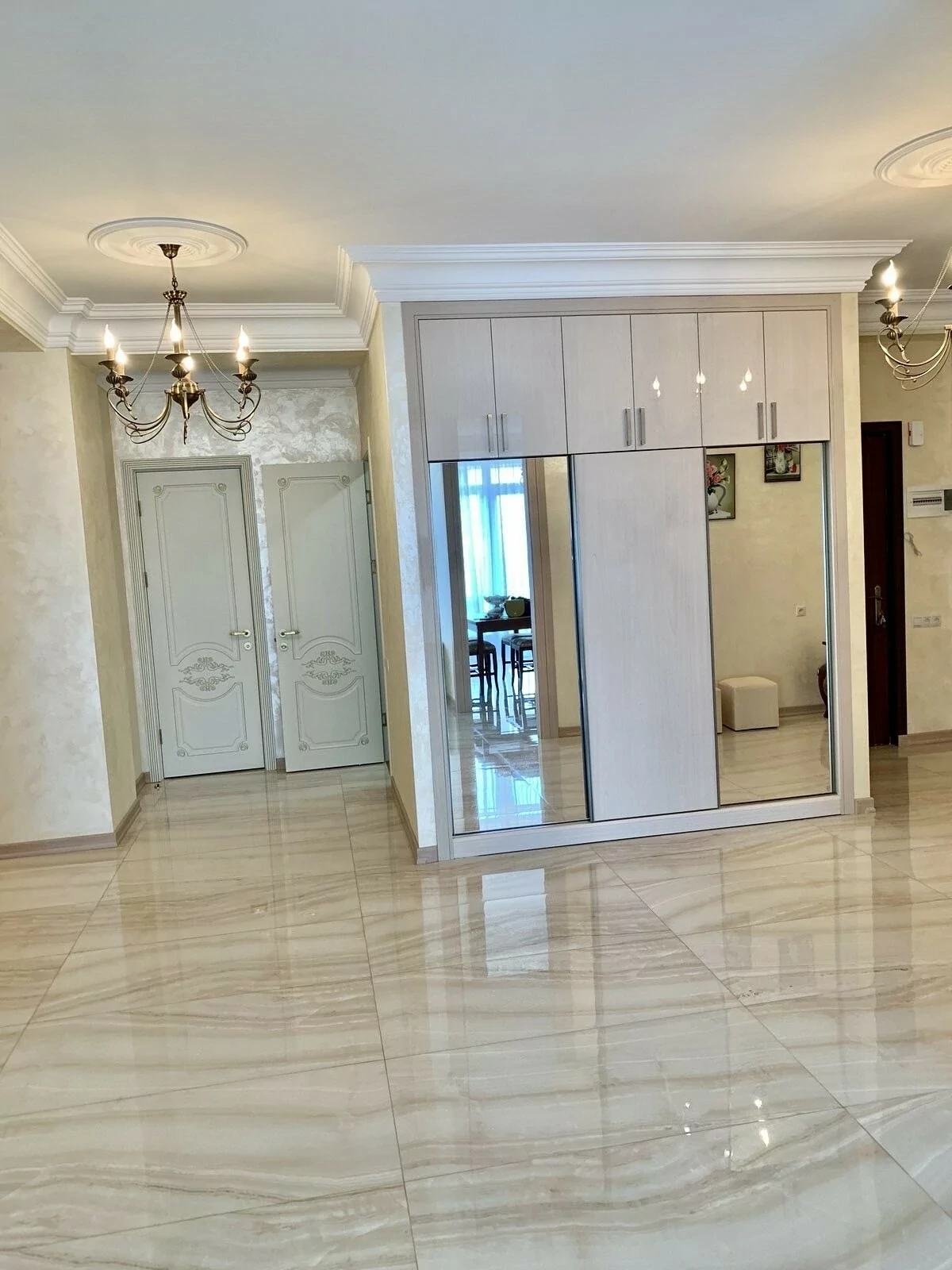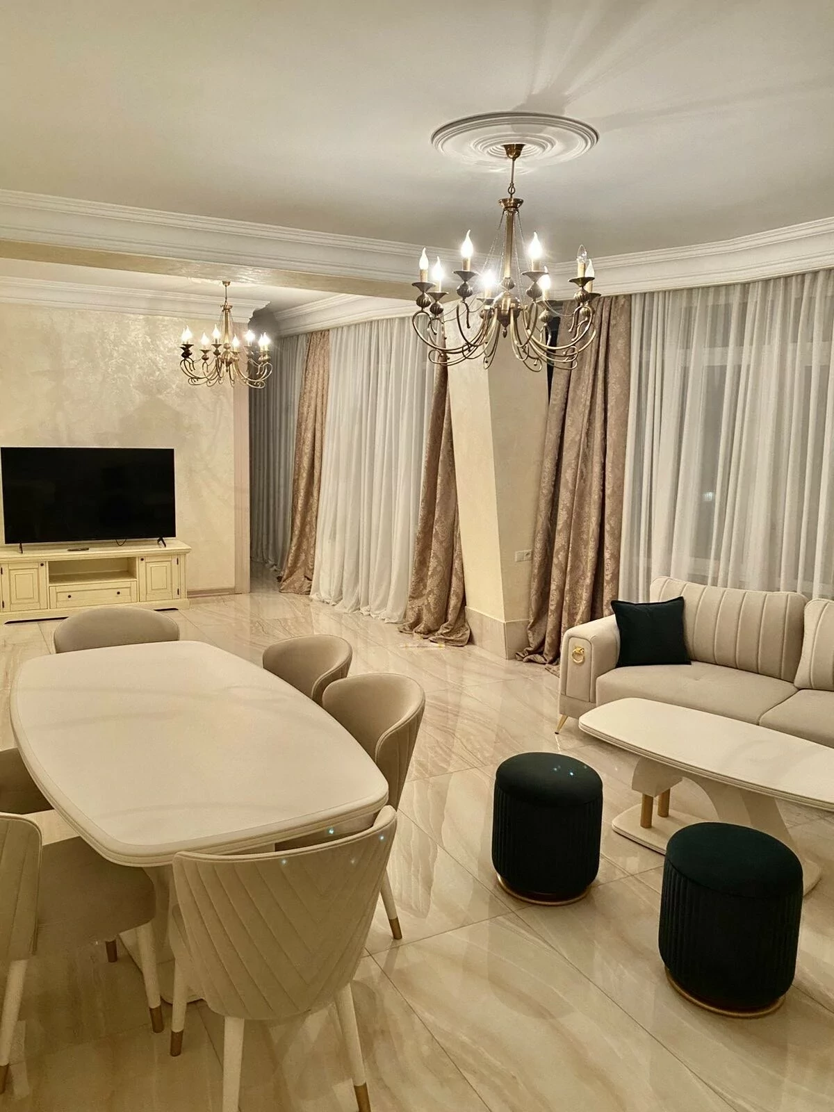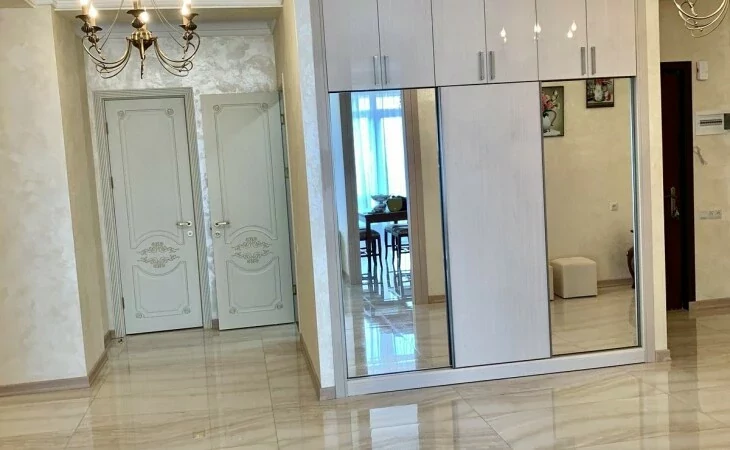 Сдается 4-комнатная квартира площадью 195 квадратных метров. М. Квартира расположена на улице Саят-Нова, на 8 этаже 22-этажного новостройки. Железная дверь, евроокна, кондиционер. Отапливается системой отопления. Обеспечен круглосуточным водоснабжением и газоснабжением. Санузел облицован кафелем, оборудован сантехникой. Есть открытый балкон. Квартира оборудована мебелью и бытовой техникой. С открытого балкона открывается прекрасный вид.