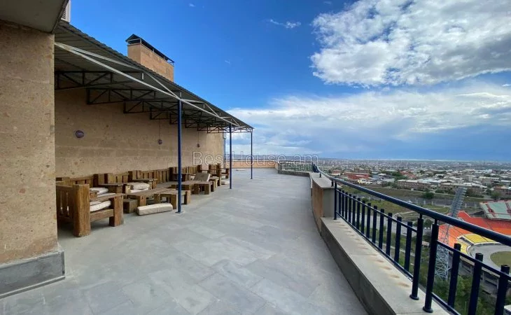 Сдается в аренду: 1000 кв.м. коммерческое помещение в центре, на последних 3-х этажах новостройки. С площади открывается прекрасный вид на город Ереван и гору Арарат. В помещение 2 кухни, более 10 комнат, 8 санузлов. Пространство подходит для программирования, логистики и других офисов.