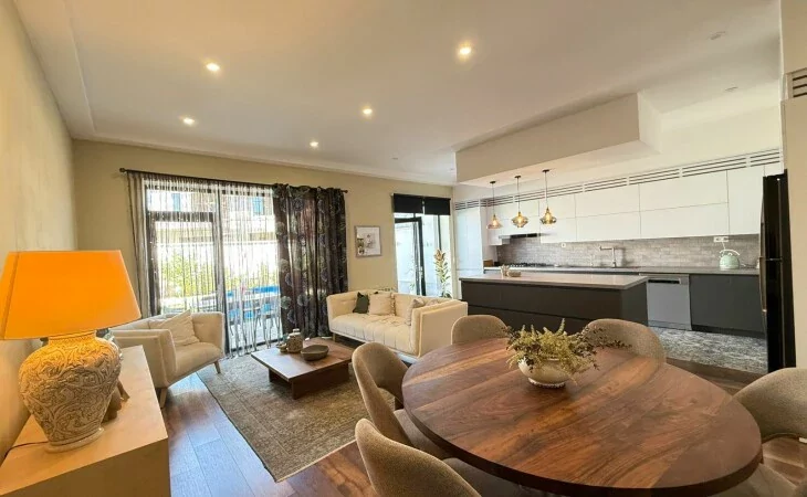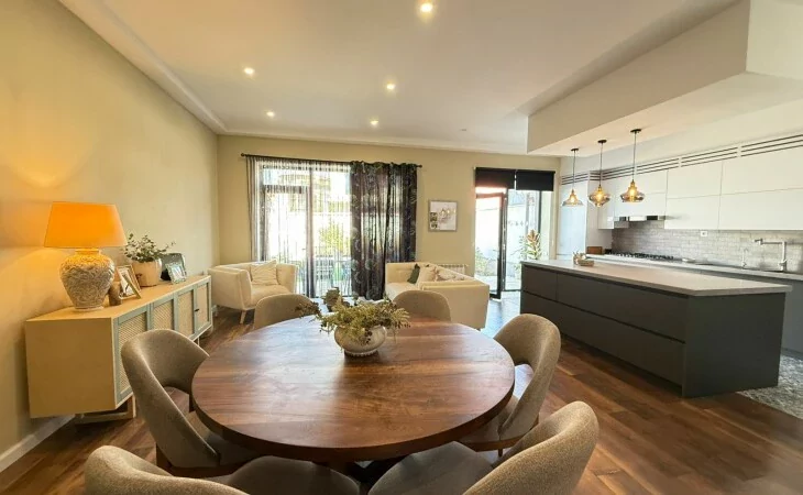 ...Продаётся стильный таунхаус в Аване, район Х. Абовяна. Выполнен дизайнерский и качественный ремонт. На первом этаже — прекрасная гостиная и кухня, гараж, санузел, на втором этаже — спальня, санузел.