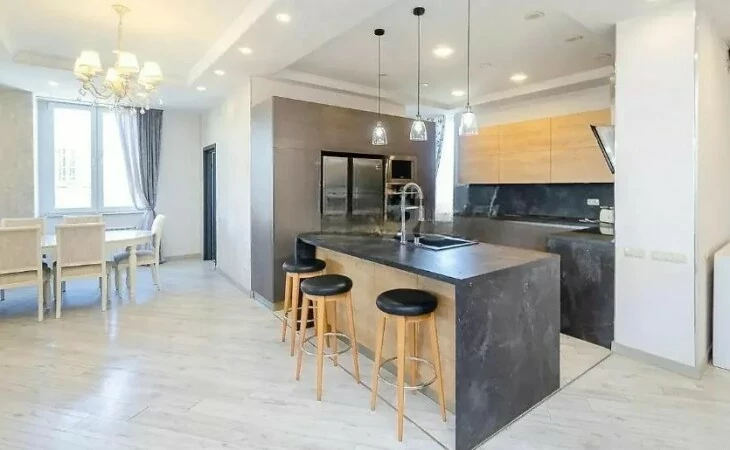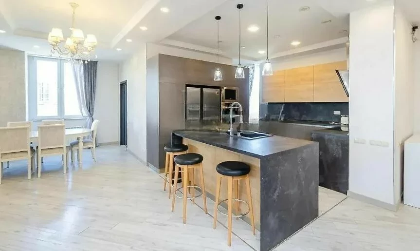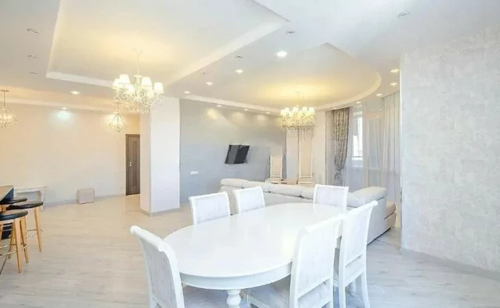 Продается 4-комнатная квартира с ремонтом площадью 160 квадратных метров на 14 этаже 17-этажного новостройки по улице Наири Заряна. Отопление газовый котел, установлен кондиционер. ванные комнаты отделаны плиткой и качественно оборудованы с сантехникой, есть ванна. В квартире 2 открытых балкона, один с электрическими жалюзи. В доме качественный лифт. Расположен в хорошем месте, рядом необходимые магазины и остановки транспорта.