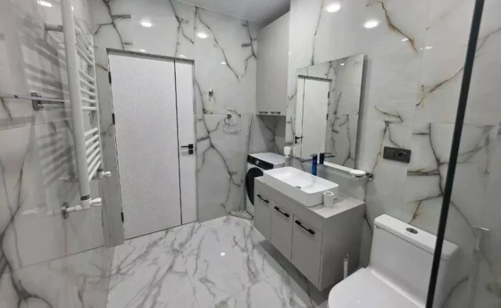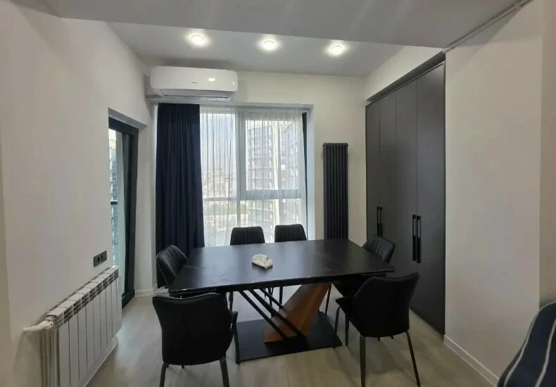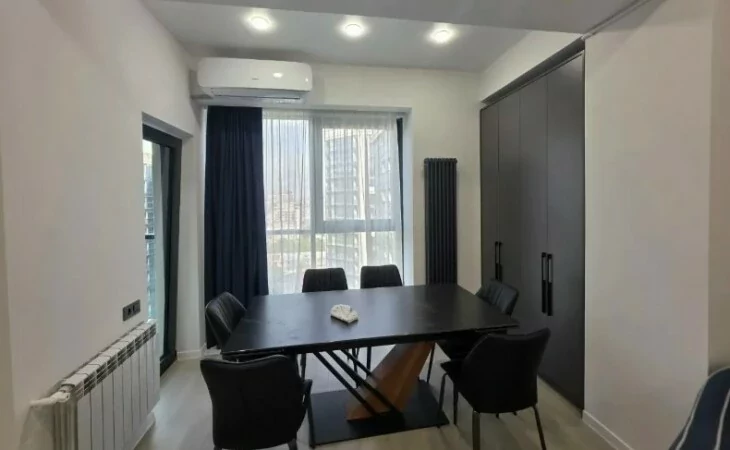 Продаётся трёхкомнатная квартира в районе Комитас. Меблированная, с ремонтом, кондиционером, холодильником, плитой, стиральной машиной. Вид во двор.