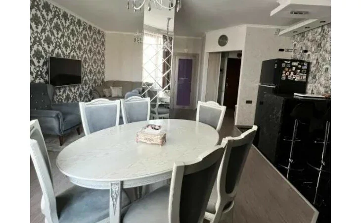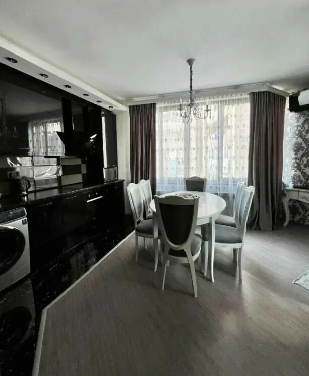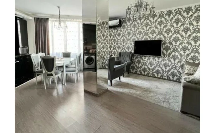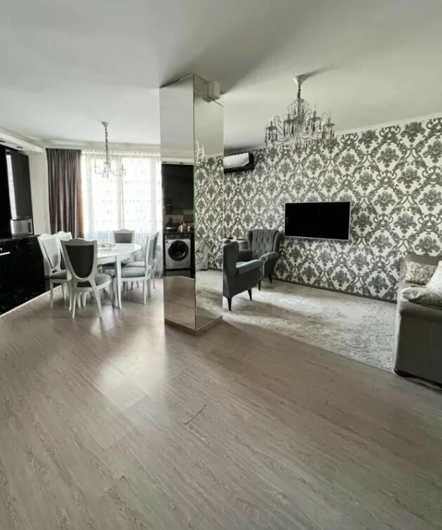 В новом здании, прихожая прекрасно отремонтирована, квартира в хорошем состоянии, продается со встроенной мебелью и кухонной техникой.