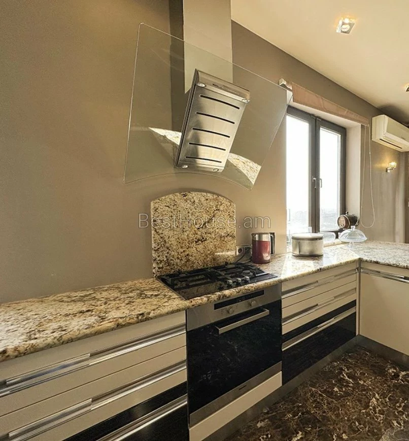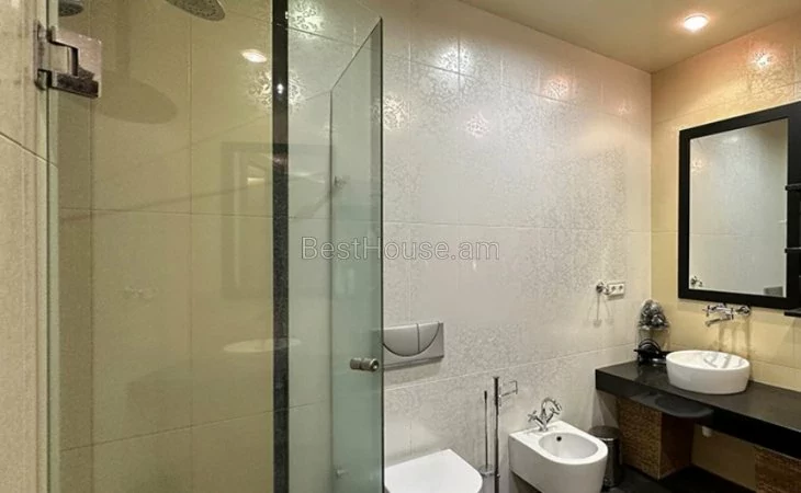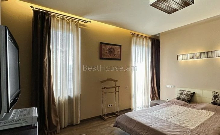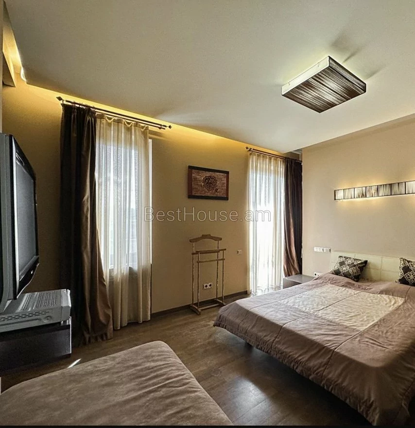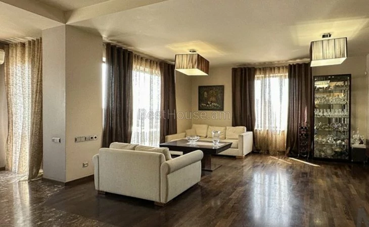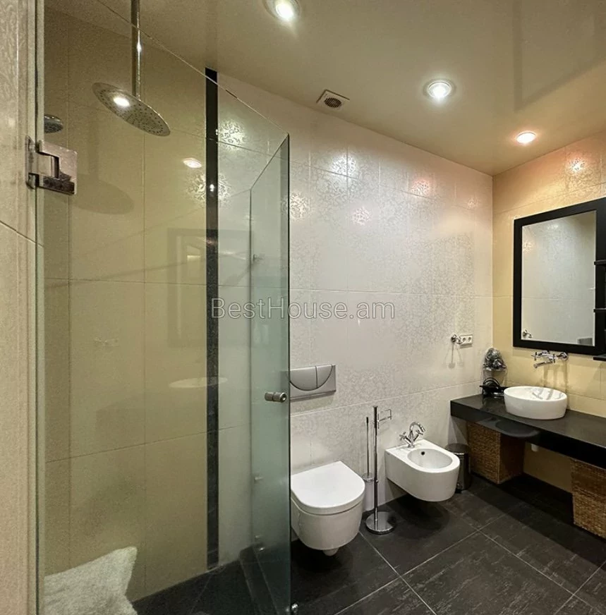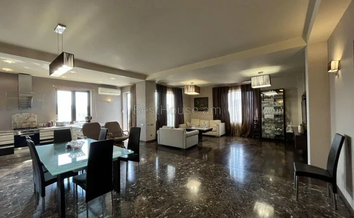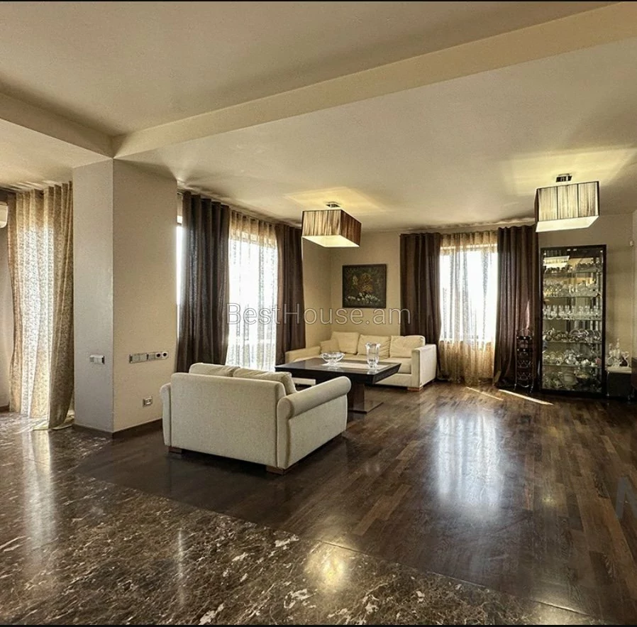 Продается современная 4-x комнатная квартира площадью 209 кв.м. на 3-ом этаже нового 8-ти этажного здания на улице Антараин. Квартира капитально отремонтирована, не заселена, установлены локальные системы отопления и кондиционирования, окна со стеклопакетами, пол покрыт дубом. санузла облицованы плиткой и укомплектованы сантехникой, установлена ванна и душевая кабинка. Имеется открытый балкон с красивым видом. В здании есть лифт и машиноместо в подземной парковке. Рядом расположены отделения банков, школа, детский сад, магазины, кафе и развлекательные заведения.