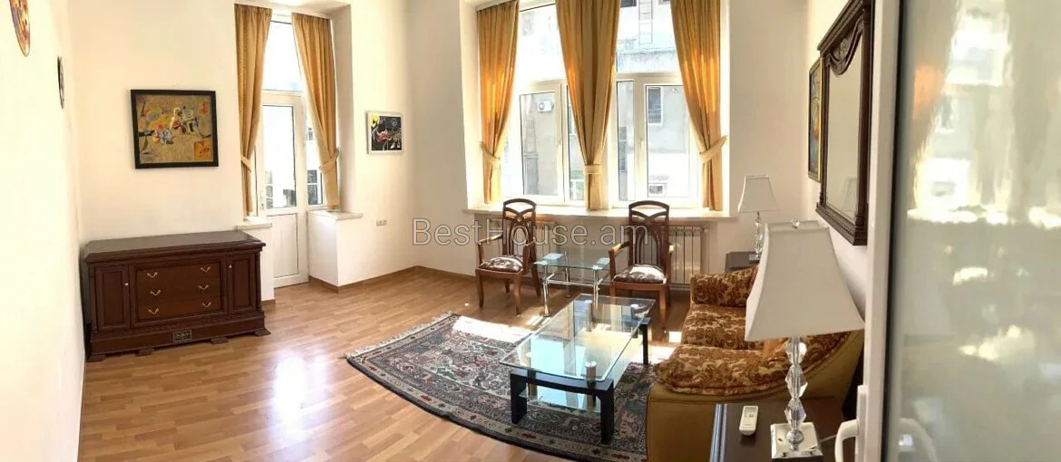 Продается 3-комнатная квартира с недвижимостью и оборудованием на одной из лучших улиц Еревана. Солнечная со всех сторон, есть просторный открытый балкон, высота потолков 3,5 метра. Все общественные места рядом: парк, метро, ​​банки, аптеки, кафе и другие разнообразные магазины. Здание имеет статус памятника архитектуры города.