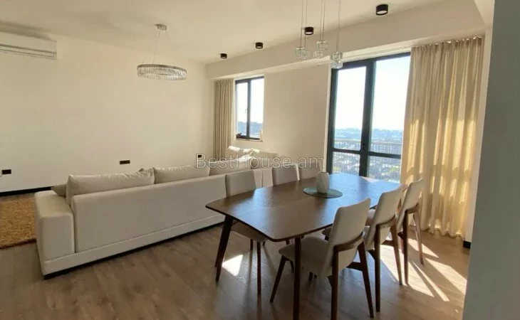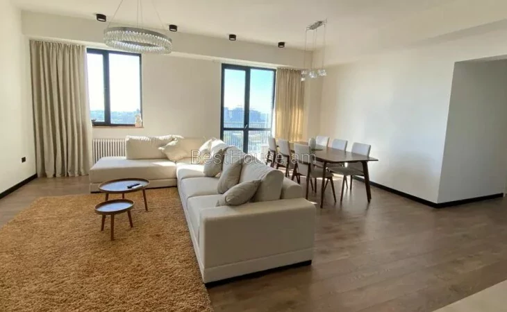 Продается красивая, светлая 4-комнатная квартира в строящемся доме по улице Ростоми, 125 кв.м., 2 санузла, квартира продается вместе с имуществом и техникой.