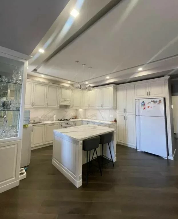 Продается светлая 4-комнатная квартира в новостройке, на улице Верин Антарай, 125 квадратных метров, 2 санузла, также в квартире есть красивый открытый балкон.