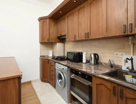 Квартира отремонтирована и оснащена необходимым имуществом и оборудованием. Кухня и ванная комната выложены плиткой. Отопление осуществляется газовым котлом (Baxi). В квартире 2 спальни, 1 кабинет, 1 гостиная и большая кухня. Открытый балкон выходит на улицу Амиряна, а со стороны двора, под окном, расположено большое футбольное поле. Здание находится рядом с супермаркетами САС и Нор Зовк. Он находится недалеко от улицы Месропа Маштоца, а также улиц Сарьяна и Пушкина, на которых полно ресторанов, пабов и других развлекательных клубов. Парк Дианы Абгар (Малибу) тоже неподалеку, 3 минуты пешком. Вы также можете дойти до площади Республики за 9 минут и до Оперного театра за 11 минут. Тренажерный зал Gold's находится в 2 минутах ходьбы.
